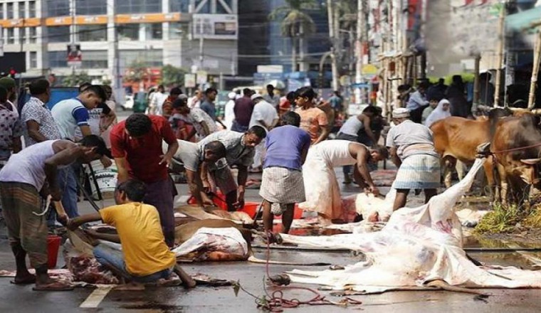 আজ পবিত্র ঈদুল আজহা। মহামারি করোনাভাইরাস পরিস্থিতির মাঝে সকালে মসজিদে মসজিদে ঈদুল আজহার নামাজ আদায় শেষে পশু কোরবানিতে ব্যস্ত হয়ে পড়েছেন নগরবাসী। কাকডাকা ভোরে ঘুম ভেঙে পশুকে কোরবানি করার জন্য গোসল করিয়ে প্রস্তুত করে রাখা হয়েছে। এছাড়া নিজেরাও গোসল করে জামা কাপড় পরিধান করে এবং আঁতর সুগন্ধি মেখে নামাজ আদায়ের জন্য মসজিদের ছুটে চলেছেন। স্বাস্থ্যবিধি বজায় রেখে নির্দিষ্ট দূরত্বে বসে এবং মাস্ক পরিধান করে মুসল্লিরা নামাজের জন্য অপেক্ষা করতে থাকেন। মসজিদের ইমাম এ সময় খুতবা পাঠ করেন। খুতবা পড়ার সময় কিভাবে কোরবানি করতে হবে, কোরবানির মাংস কিভাবে বিলিবণ্ঠন করতে হবে ইত্যাদি সম্পর্কে বয়ান করেন। এছাড়াও বয়ানে মহামারি করোনাভাইরাস ও চলমান বন্যা থেকে দেশবাসীকে রক্ষার জন্য মহান আল্লাহর দরবারে ফরিয়াদ জানান। নামাজ আদায় শেষে আল্লাহর কাছে দেশের মঙ্গল কামনায় মোনাজাত করা হয়। অন্যান্য বছরের মতো এবার ঈদের নামাজ আদায় শেষে প্রচলিত রেওয়াজ অনুযায়ী কোলাকুলি করেননি। নামাজ আদায় শেষে মুসল্লিরা কুরবানির পশু জবাইয়ের ব্যস্ত হয়ে পড়েন। জাতীয় বায়তুল মোকাররম মসজিদের আজ সর্বমোট সাতটি জামাত অনুষ্ঠিত হবে। অন্যান্য বছর পশু জবাই করা পর্যন্ত প্রায় প্রতিটি পরিবারের শিশুরা উপস্থিত থাকলেও এবার ভাইরাসে আক্রান্ত হওয়ার আশঙ্কায় শিশুরা উপস্থিত ছিল না।