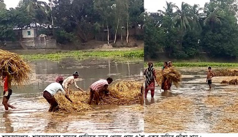 শামছুর রহমান শিশির, শাহজাদপুর থেকে : উজানের ডল আর বর্ষনে সৃষ্ট বন্যার পানিতে শাহজাদপুর উপজেলার নিম্নাঞ্চলের বিভিন্ন স্থানে প্রায় ৫’শ একর জমির পাঁকা ধান তলিয়ে গেছে। অস্বাভাবিক পানি বৃদ্ধিতে কৃষকেরা পাঁকা ধান কেটে ঘরে তোলার আগেই তাদের বুকভরা স্বপ্ন ব্যার্থতায় পর্যবসিত হয়েছে। ফলে ক্ষতিগ্রস্থ কৃষকদের বুকজুড়ে হাহাকার সৃষ্টি হয়েছে। জানা গেছে, গত ক’দিন হলো অকস্মাৎ উপজেলার যমুনা, করতোয়া, বরাল, গোহালা, ধলাই ও চাকলাই নদীর পানি অস্বাভাবিকহারে বৃদ্ধি পেয়ে উপজেলার নিম্নাঞ্চলেরবিভিন্ন স্থান প্লাবিত হয়েছে। যমুনা নদীর পানি ঢুকে পড়ায় উপজেলার জামিরতা, বাশুরিয়া, ভূল বায়রা, হাটবায়রাসহ বিভিন্ন স্থানের প্রায় ’৫শ একর জমিতে রোপিত পাঁকা ধান বন্যার পানিতে তলিয়ে গেছে। এছাড়া, পোতাজিয়া ও কায়েমপুর ইউনিয়নের নিম্নাঞ্চলের বিভিন্ন স্থানে রোপিত পাঁকা ধানে বানের পানিতে মই পড়েছে। অনেক স্থানে কৃষকেরা পানির মধ্যে নেমে তলে যাওয়া ধান কাটার ব্যর্থ চেষ্টা চালাচ্ছেন। শ্রমিক সংকটের ফলে কৃষকেরা তড়িঘড়ি করে ধান কেটে ঘরে তুলতে পারছে না। এতে তাদের অবর্ণনীয় আর্থিক ক্ষতি সাধিত হয়েছে বলে তারা জানিয়েছে। ফলশ্রুতিতে তাদের মধ্যে হা-হুঁতাশ বেড়েছে।