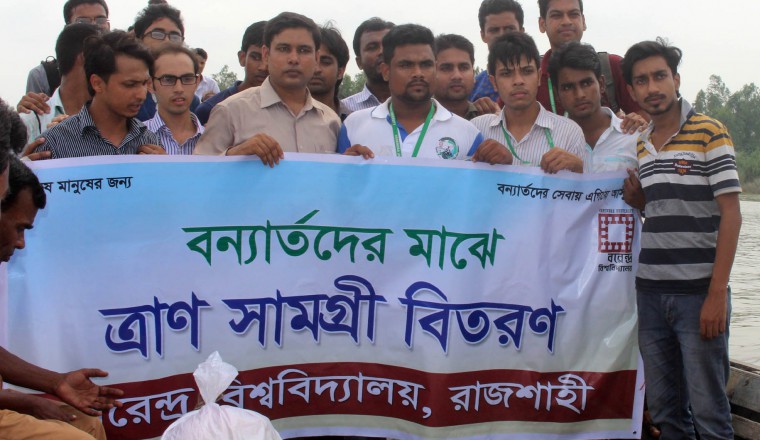 শাহজাদপুর প্রতিনিধিঃ শাহজাদপুর উপজেলায় বন্যা কবলিত যমুনার দুর্গম চরাঞ্চলের পানিবন্দি ২’শতাধিক পরিবারের মাঝে এাণ সামগ্রী বিতরন করেন বরেন্দ্র বিশ্ববিদ্যালয়ের শিক্ষক ও শিক্ষার্থীরা। আজ রবিবার সকাল ১২ টায় উপজেলার কৈজুরি ইউনিয়নের যমুনাচরে অসংখ্য হতদরিদ্র , অসহায়, বানভাসী দুস্থ জনমানুষের মধ্যে ত্রাণ বিরতণ করেন। সকাল ১১ টার দিকে উপজেলায় বরেন্দ্র বিশ্ববিদ্যালয়ের সবাই আসলে শাহজদাপুর উপজেলা নিবার্হী অফিসার শামীম আহমেদ যমুনা চরে যাওয়ার জন্য সব ব্যবস্থা করে দেন ও নিরাপত্তার জন্য সাথে প্রশাসন দিয়েন দেন বরেন্দ্র বিশ্ববিদ্যালয়ের শিক্ষক ও শিক্ষাথীদের সাবিক সহযোগিতা করেন দি বার্ড সেফটি হাউজের উদ্যোক্তা ও প্রতিষ্ঠাতা সাংবাদিক মামুন বিশ্বাস এবং কৈজুরি ২ জন ইউপি সদস্য। এসময় বরেন্দ্র বিশ্ববিদ্যালয়ের শিক্ষক বলেন, বন্যায়,পানি বন্দি মানুষ রক্ষাতে আমাদের মত সবাইকে এগিয়ে আসতে হবে । ক্ষতিগ্রস্থ জনমানুষের মাঝে পর্যায়ক্রমে ত্রাণ বিরতণ করা হবে।বন্যাকবলিত মানুষদের যেন কষ্ট না হয় সেজন্য সাধ্যমতো ত্রাণ ও অর্থ সহায়তা প্রদান করা হবে।বরেন্দ্র বিশ্ববিদ্যালয়ের উদ্যোগে ২ শত পরিবারের মাঝে এই এাণ বিতরন।