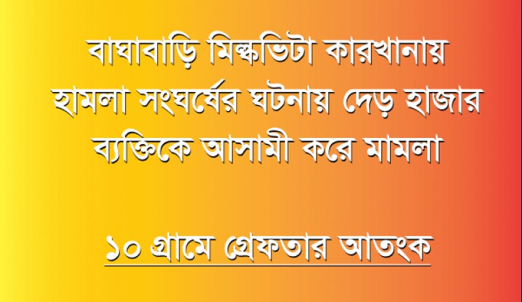 শাহজাদপুর প্রতিনিধিঃ শাহজাদপুর উপজেলার বাঘাবাড়ি মিল্ক ভিটা কারখানায় হামলা কালে পুলিশের কাজে বাধা, পুলিশ বহনকারী সিএনজি ভাংচুর ও পুলিশ কন্সটেবল বাবুলকে মারপিটের ঘটনায় আজ রোববার শাহজাদপুর থানার এসআই আব্দুস সালাম খান বাদী হয়ে বাঘাবাড়ি সহ আশপাশ এলাকার প্রায় দেড় হাজার ব্যক্তিকে আসামী করে মামলা দায়ের করেছে। অপরদিকে এ হামলা সংঘর্ষে ১টি পিকআপ ভ্যান, ১টি মাইক্রোবাস ও ২০টি মোটর সাইকেল ভাংচুর ও ১৫টি মোটর সাইকেল লুট করে নিয়ে যাওয়ার ঘটনায় মিল্ক ভিটার পরিচালক এ্যাডভোকেট আব্দুল হামিদ লাভলুর পক্ষে তার সহকারি এ্যাডভোকেট মামুনুর রশিদ লিয়াকত বাদী হয়ে নুকালি প্রাথমিক দুগ্ধ উৎপাদনকারী সমবায় সমিতির সভাপতি আল মাহমুদ সহ ৩০ জনকে আসামী করে শাহজাদপুর আদালতে একটি মামলা দায়ের করেছে। ফলে বাঘাবাড়ি, আলোকদিয়ার, শাকতোলা, শ্যালাচাপড়ি, গঙ্গাপ্রসাদ, হাটবায়রা, মাদলাসহ ১০টি গ্রামের মধ্যে গ্রেফতার আতংক বিরাজ করছে। গ্রেফতার এড়াতে এসব গ্রামের পুরুষেরা বাড়িঘর ছেড়ে পালিয়ে থাকায় গ্রামগুলি পুরুষ শুন্য হয়ে পড়েছে। অপরদিকে আবারো হামলার আশংকায় বাঘাবাড়ি মিল্কভিটা এলাকায় ব্যাপক পুলিশ মোতায়েন করা হয়েছে। উল্লেখ্য গত শনিবার সকালে বাঘাবাড়ি মিল্কভিটা চত্বরে প্রাথমিক দুগ্ধ উৎপাদনকারী সমবায় সমিতির সদস্যদের সমন্বয় সভা শুরুর আগ মুহুর্তে প্যান্ডেলে ত্রিপল না থাকার বিষয়কে কেন্দ্র করে মিল্কভিটা পরিচালনা পর্ষদের পরিচালক এ্যাডভোকেট আব্দুল হামিদ লাভলুর সাথে নুকালি প্রাথমিক দুগ্ধ উৎপাদনকারী সমবায় সমিতির সভাপতি আল মাহমুদের বাকবিতন্ডার জের ধরে বহিরাগত ক্যাডারদের আক্রমনে আল মাহমুদ আহত হওয়ার ঘটনায় বাঘাবাড়ি নুকালি সহ ১০ গ্রামের লোক ক্ষুব্ধ হয়ে মিল্কভিটা কারখানায় হামলা চালায়। এসময় মিল্কভিটা কারখানা এলাকা রণক্ষেত্রে পরিনত হয়। হামলাকালে পুলিশের ১টি পিকআপ ভ্যান, ১টি মাইক্রোবাস ও ২০টি মোটর সাইকেল ভাংচুর ও ১৫টি মোটর সাইকেল লুট করা হয়। খবর পেয়ে র্যাব ও পুলিশ ঘটনাস্থলে পৌছে ২ ঘন্টা চেষ্টার পর পরিস্থিতি নিয়ন্ত্রণে আনে। এসময় পুলিশ পরিস্থিতি নিয়ন্ত্রণে আনতে ৪৯ রাউন্ড সর্টগানের ফাকা গুলি নিক্ষেপ করে। এঘটনার পর থেকে বাঘাবাড়ি নৌবন্দর এলাকায় থমথমে অবস্থা বিরাজ করছে। এব্যাপারে মামলার তদন্তকারি কর্মকর্তা এসআই বাণী ইসরাইল জানান, আসামীদের গ্রেফতারে অভিযান অব্যাহত রয়েছে। বাঘাবাড়ি মিল্কভিটা কারখানার পরিস্থিতিও স্বাভাবিক রয়েছে।