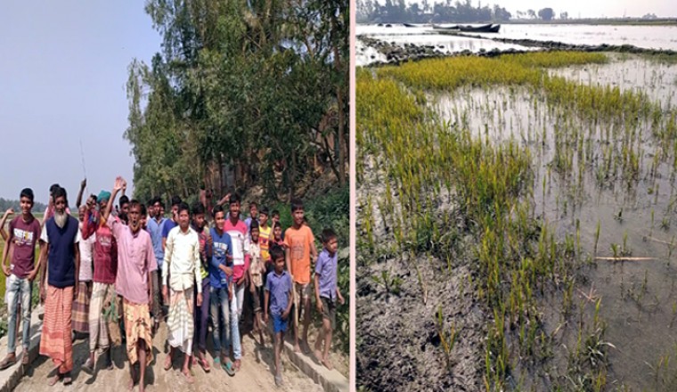 সরেজমিনে এলাকা ঘুরে দেখা যায়, অপরিকল্পিতভাবে বালুর স্তুপ করায় ড্রেজিং এর পানি গড়িয়ে বড়ধুনাইল গ্রামে বোরো মৌসুমে বীজতলাসহ রোপনকৃত প্রায় ২শত বীঘা জমি পানিতে তলিয়ে গেছে। দিশেহারা হয়ে পরেছে স্থানীয় কৃষকেরা। এর প্রতিকার চেয়ে দ্বারে দ্বারে ঘুরছে ক্ষতিগ্রস্ত কৃষকেরা। ক্ষতিগ্রস্ত কৃষকগণ জানায়, সেনাবাহিনী তত্বাবধানে একটি ঠিকাদারি প্রতিষ্ঠান উপজেলার রুপবাটি ইউনিয়নের আন্ধারমানিক গ্রামের পাশে বড়াল নদীতে নদী খনন প্রকল্পের কাজ করছে। আন্ধারমানিক বাধের পাশে অনেক জায়গা লিজ নিয়েছে ইউনিয়নের ৮নং ইউপি সদস্য আবুল কাশেম। সেনাবাহিনীর কাছ থেকে জমি ভরাটের কথা বলে বিনামুল্যে বালু নিয়ে বাধের পাশে স্তুপাকারে রাখছেন ইউনিয়নের ৮নং ইউপি সদস্য আবুল কাশেম। পরবর্তীতে ঐ বালু বাইরে বিক্রী করবেন বলে জানায় স্থানীয়রা। ইউপি সদস্য আবুল কাশেম ব্যাবসার লক্ষ্যে অপরিকল্পিতভাবে বালুর স্তুপ করায় ড্রেজিং এর পানি গড়িয়ে বড়ধুনাইল গ্রামে বোরো মৌসুমে বীজতলাসহ রোপনকৃত প্রায় ২শত বীঘা জমি পানিতে তলিয়ে গেছে। এর প্রতিকার চেয়েছে ক্ষতিগ্রস্ত কৃষকেরা ইউপি সদস্য কাশেমের বিরুদ্ধে বিক্ষোভ মিছিল করে।