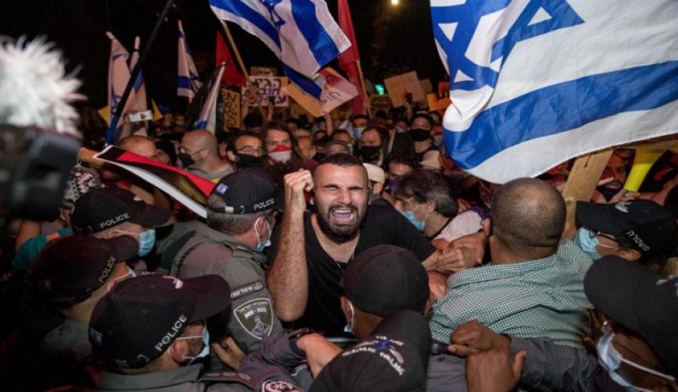 ক্ষোভ জমেছিল বেশকিছু দিন ধরেই। রবিবার (৯ আগস্ট) রাতে রাজধানীর রাস্তায় আছড়ে পড়ল ভিড়। ইসরায়েলের প্রধানমন্ত্রী বেঞ্জামিন নেতানিয়াহুর বাসভবনের সামনে জড়ো হলেন হাজার হাজার বিক্ষোভরত জনতা। গর্জে উঠল হুঙ্কার, আপনার সময় শেষ। এখনই ক্ষমতা ছাড়ুন। একে তো এই সরকার দুর্নীতিগ্রস্ত। দ্বিতীয়ত করোনা পরিস্থিতি সামলাতে ব্যর্থ নেতানিয়াহু। বিক্ষোভকারীদের অভিযোগ মূলত এই দুই। গত কয়েক সপ্তাহ ধরেই সরকারবিরোধী উত্তাপ বাড়ছিল দেশের একাংশে। নেতানিয়াহুর বিরুদ্ধে দুর্নীতি মামলা চলছে। এর মধ্যেই গত মে মাসে অল্প কিছু ভোটে জিতে পঞ্চম বারের জন্য ক্ষমতায় আসেন তিনি। শনিবার (৮ আগস্ট) শুরু হওয়া বিক্ষোভকে গণতন্ত্র-বিরোধী কার্যকলাপ বলে চিহ্নিত করছে নেতানিয়াহু সরকার। তার দক্ষিণপন্থি লিকুড পার্টির দাবি বামেরা চক্রান্ত করে এই বিক্ষোভ দেখিয়েছে। ‘চ্যানেল ১২’ একটি বার্তা সংস্থার বিরুদ্ধে অভিযোগের আঙুল তুলেছে নেতানিয়াহুর দল। তাদের বক্তব্য, বামপন্থি আন্দোলনকারীদের উস্কানোর পিছনে একমাত্র ওদেরই হাত রয়েছে। উত্তেজনা ছড়াতে যা-যা করা সম্ভব, ওরা করেছে। লিকুড তাদের বিবৃতিতে জানিয়েছে, ইসরায়েলের অর্থনীতি ফেরানোর লড়াই করে যাচ্ছেন নেতানিয়াহু। ইসরায়েলিদের কী ভাবে আর্থিক সাহায্য করা যায়, সেই চেষ্টা চালিয়ে যাচ্ছেন তিনি। প্রধানমন্ত্রীর সরকারি বাসভবন পর্যন্ত পৌঁছে যান বিক্ষোভকারীরা। এ সময় তাদের অধিকাংশের হাতে ছিল জাতীয় পতাকা। মুখে নেতানিয়াহুবিরোধী ভয়ঙ্কর সব স্লোগান। বিক্ষোভস্থলের কাছাকাছি একটি বাড়ির গায়ে ভেসে উঠে প্রধানমন্ত্রীর উদ্দেশে লেখা বিশালাকৃতি ‘খোলা চিঠি’— আপনার সময় শেষ হয়েছে। এছাড়াও দেশের একাধিক সেতু, গুরুত্বপূর্ণ হাইওয়ে অবরোধ করেন অসংখ্য মানুষ। বাণিজ্য নগরী তেলআবিবও জ্বলে ওঠে বিক্ষোভে। ইয়েল নামে এক তরুণী জানান, তেলআবিবের রেস্তরাঁয় কাজ করতেন তিনি। করোনা পরিস্থিতিতে কাজ হারিয়েছেন। ইয়েলের অভিযোগ, আমার মতো আরও অনেকে কাজ হারিয়েছেন। কিন্তু সরকার কোনো সাহায্য করছে না। এই এক বার মনে হয়েছিল, এ বার নেতানিয়াহু হয়তো কিছু করবেন। কিন্তু নাহ, তিনি কিছুই করেননি।