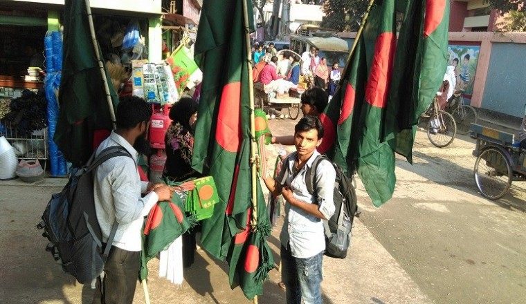 ফারুক হাসান কাহার ঃ বাঙ্গালীর জীবনের স্মৃতিগাথা মহান বিজয়ের মাস ডিসেম্বর।  দীর্ঘ নয় মাস রক্তক্ষয়ী যুদ্ধের পর এ মাসেই স্বাধীন হয় বাংলাদেশ।  তাই যথাযোগ্য মর্যাাদায় ১৬ ডিসেম্বর মহান বিজয় দিবস পালনের লক্ষ্যে শহর থেকে শুরু করে গ্রামাঞ্চল পর্যন্ত সরকারি, আধা সরকারি, বিভিন্ন সামাজিক ও সাংগঠনিক সংগঠন সহ সর্বস্থরের মানুষ ব্যাপক প্রস্তুতি গ্রহন করে। আর এই বিজয়ের মাসে অনেকাংশে বেড়ে যায় লাল সবুজের জাতীয় পতাকার চাহিদা।  বিভিন্ন আকারের পতাকা কিনতে ব্যস্ত হয়ে উঠে দেশবাসী ফলে জাতীয় পতাকা বিক্রির জন্য ভ্রাম্যমাণ হকাররা ব্যস্ত হয়ে উঠেছে।  বিভিন্ন মাপের পতাকা হাতে বা কয়েক ফুট উচু বাঁশের উপর থেকে শুরু করে নিচ পর্যন্ত বিভিন্ন সাইজের পতাকায় সাজিয়ে উপজেলার বিভিন্ন স্থানে বিক্রি করছে ১০ থেকে ১৫ জন হকার। পতাকা বিক্রেতা রাহুলের সাথে কথা বলে জানা যায় , সে একজন ষ্টুডেন্ট কিন্তু ডিসেম্বর মাসে পতাকা বিক্রি করেন।  চাহিদা বেশি থাকায় বেশি লাভে বিক্রি করতে পারেন ।  ১০ টাকা থেকে ৩০০ টাকার দামের পতাকা রয়েছে তার কাছে।  প্রতিদিন আকার ভেদে ৪০০ পিসের মত পতাকা বিক্রি করে সে।