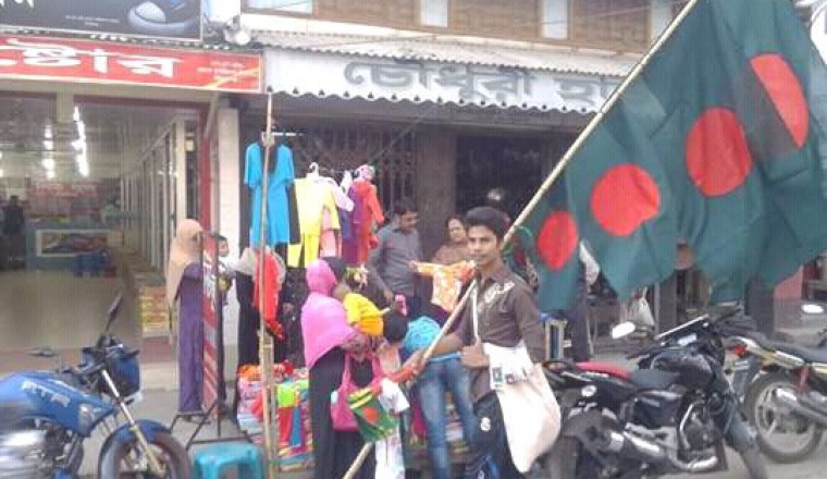 নিহাল খান, শাহজাদপুর : মুক্তিযুদ্ধের ৪৫ বছর পেরিয়েছে বাংলাদেশ। বছর ঘুরে আবারো এসেছে বিজয়ের মাস ডিসেম্বর। আগামীকাল শুক্রবার ১৬ ই ডিসেম্বর মহান বিজয় দিবস। যথাযথ মর্যাদায় দেশব্যাপী উদযাপিত হবে এ দিবসটি। বিজয়ের আনন্দধারা বইছে সবখানে। ইতিমধ্যে সব শিক্ষা প্রতিষ্ঠান বিজয় দিবস উদযাপন এর জন্য সকল প্রস্তুতি সম্প্রন্ন করেছে। বিজয়ের এই মাসটিকে বিশেষভাবে মনে রাখতে বাসাবাড়ির ছাদ ছাড়াও শাহজাদপুর এর বিভিন্ন গুরুত্বপূর্ণ ভবন, দোকানপাট,ব্যক্তিগত গাড়ি, গণ পরিবহন, রিকশা, এমনকি সাইকেল এর সামনেও উড়ছে লাল সবুজের নিশান । অন্যদিকে দিবসটিকে সামনে রেখে শাহজাদপুরে জাতীয় পতাকা বিক্রির হিরিক পড়্েছে। প্রতি বছর দিবসটি এলেই শহরের ওলিগলি, রাস্তাঘাটে দেখা যায় পতাকা ফেরিওয়ালাদের। লম্বা বাশে করে জাতীয় পতাকা বিক্রি করেন এসব মোসুমী পতাকা বিক্রেতা। ছোট,মাঝারী বড় তিন সাইজের পতাকা ছাড়াও লাল সবুজের হাত ও মাথার ব্যন্ড, স্টিকার তারা বিক্রি করে। সরোজমিনে শাহজাদপুরে ঘুরে দেখা গেছে শিশু থেকে বৃদ্ধ সব বয়সী লোকেরাই কিনছে লাল সবুজের পতাকা।