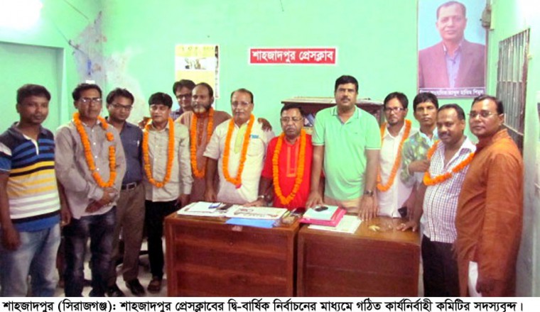 শাহজাদপুর সংবাদ ডটকম, শামছুর রহমান শিশির, শনিবার, ৪ আগষ্ট ২০১৮ খ্রিষ্টাব্দ : আজ শনিবার বিকেলে ঐতিহ্যবাহী শাহজাদপুর প্রেসক্লাবের দ্বি-বার্ষিক নির্বাচন অনুষ্ঠিত হয়েছে। অনুষ্ঠিত দ্বি-বার্ষিক নির্বাচনে সর্বসম্মতিক্রমে বিমল কুমার কুন্ডু (সংবাদ) সভাপতি ও শফিকুজ্জামান শফি (মানবকন্ঠ) সাধারণ সম্পাদক পদে পুনঃ নির্বাচিত করে শাহজাদপুর প্রেসক্লাবের ১৭ সদস্য বিশিষ্ট কার্যনির্বাহী কমিটি গঠিত হয়েছে। বিমল কুমার কুন্ডু’র সভাপতিত্বে ও শফিকুজ্জামান শফি’র সঞ্চালনায় অনুষ্ঠিত ওই দ্বি-বার্ষিক নির্বাচনী সভায় সর্বসম্মতিক্রমে সহ-সভাপতি পদে মোঃ আবুল কাশেম (নয়াদিগন্ত), মোঃ আসলাম আলী (আমারদেশ) ও এম এ জাফর লিটন (যায়যায় দিন) নির্বাচিত হয়েছেন। উক্ত নির্বাচনে যুগ্ম-সাধারণ সম্পাদক পদে সৈয়দ হুমায়ুন পারভেজ শাব্বির (জনকন্ঠ) ও মোঃ আল- আমিন হোসেন (দিনকাল), অর্থ বিষয়ক সম্পাদক পদে শ্রী সাগর বসাক (করতোয়া, মানবজমিন), দফতর ও পাঠাগার সম্পাদক পদে হাসানুজ্জামান তুহিন (প্রতিদিনের সংবাদ), সাহিত্য ও সাংস্কৃতিক সম্পাদক পদে মোঃ জহুরুল ইসলাম (আমার সংবাদ), তথ্য ও প্রযুক্তি বিষয়ক সম্পাদক পদে আবুল হাসনাত টিটো (এশিয়া বাণী), প্রচার ও প্রকাশনা সম্পাদক পদে শামছুর রহমান শিশির (জনতার মশাল), ক্রীড়া ও পরিবেশ বিষয়ক সম্পাদক পদে এসএম শফিউল হক শিলিং (কলম সৈনিক) নির্বাচিত হয়েছেন। নির্বাচনে নির্বাহী সদস্য পদে এ্যাড. আনোয়ার হোসেন (শাহজাদপুর বার্তা), এ্যাড. কবীর আজমল বিপুল(ভোরের কাগজ), মুস্তাক আহমেদ (প্রান্তিক সংবাদ) ও মোঃ মুমীদুজ্জামান জাহান (যুগান্তর) নির্বাচিত হয়েছেন। এর আগে নির্বাচনী অধিবেশনে সংবাদকর্মীদের ঐক্যবদ্ধতা ও শাহজাদপুর প্রেসক্লাবের গতিশীলতা বৃদ্ধির লক্ষে বক্তব্য রাখেন, বিমল কুন্ডু, শফিকুজ্জামান শফি, এ্যাড. আনোয়ার হোসেন, সৈয়দ হুমায়ুন পারভেজ শাব্বির, আবুল কাশেম, মুস্তাক আহমেদ, কাজী শওকত, আল-আমিন হোসেন, এমএ জাফর লিটন, শামছুর রহমান শিশির প্রমূখ। শেষে প্রেসক্লাবের সদস্যরা নবগঠিত কার্যনির্বাহী পরিষদের সদস্যদের ফুলেল শুভেচ্ছা দিয়ে বরণ করে নেন।