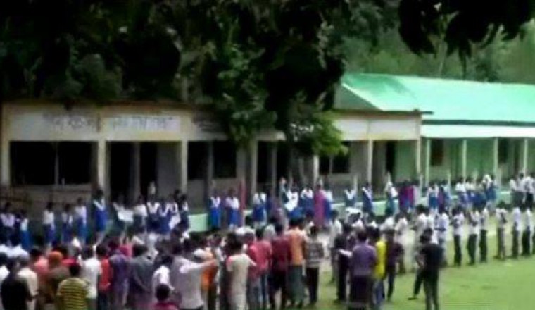 অসীম মন্ডল, সিরাজগঞ্জ: বেলকুচি উপজেলার ধুকুরিয়া বেড়া বহুমুখী উচ্চ বিদ্যালয়ের প্রধান শিক্ষককে মারপিটের প্রতিবাদে আজ বিদ্যালয় প্রাঙ্গণে মানববন্ধন করা হয়। সিরাজগঞ্জের বেলকুচি উপজেলার ধুকুরিয়া বেড়া বহুমুখী উচ্চ বিদ্যালয়ের প্রধান শিক্ষককে মারপিটের প্রতিবাদে বিক্ষোভ মিছিল ও মানববন্ধন করেছেন অভিভাবক, শিক্ষক, ছাত্রছাত্রীসহ এলাকাবাসী। সোমবার বিদ্যালয় প্রাঙ্গণে এ কর্মসূচি পালিত হয়। এই সময় অবিলম্বে নির্বাচনের মাধ্যমে বিদ্যালয় ব্যবস্থাপনা কমিটি গঠনের দাবি জানানো হয়। কর্মসূচি চলাকালে বক্তারা বলেন, প্রভাবশালী একটি মহল বিনা নির্বাচনে তাঁদের মনোনীত প্রার্থীদের দিয়ে ধুকুরিয়া বেড়া বহুমুখী উচ্চ বিদ্যালয়ের ব্যবস্থাপনা কমিটি গঠনের পাঁয়তারা করছিল। অভিভাবক সদস্য ও এলাকাবাসীর ইচ্ছানুযায়ী প্রধান শিক্ষক জমারত আলী ব্যবস্থাপনা কমিটি নির্বাচনের তফসিল ঘোষণা করেন। নির্বাচনের তফসিল ঘোষণা করায় গত ৭ সেপ্টেম্বর ওই গ্রামের আবু বক্কার সিদ্দিকের নেতৃত্বে ২০-২৫ জনের সন্ত্রাসী বিদ্যালয়ে ক্লাস চলা অবস্থায় হামলা, ভাঙচুর ও লুটপাট চালায়। এ সময় তারা প্রধান শিক্ষককে মারপিট করে গুরুতর আহত করে পালিয়ে যায়। বক্তারা আরো বলেন, এই হামলার ঘটনায় মামলা হলেও পুলিশ আসামিদের এখনো আটক করেনি। তাঁরা অবিলম্বে ওই সন্ত্রাসীদের আটক ও নীতিমালা অনুযায়ী নির্বাচনের মাধ্যমে কমিটি গঠন করার দাবি জানান। মানববন্ধনে বক্তব্য দেন বিদ্যালয় ব্যবস্থাপনা কমিটির বর্তমান সভাপতি হেলাল উদ্দিন, অভিভাবক বাবু মণ্ডল, শহীদুল ইসলাম, মোক্তার হোসেন, নজরুল ইসলাম, আব্দুর রাজ্জাক, ফজলুল হক, আমির হোসেন মিন্টু, আরিফুল হক, শিক্ষক আব্দুর রউফ, আব্দুল আলীম, রফিকুল ইসলাম, কাজী নুরুল ইসলাম, মাহমুদা খাতুন প্রমুখ। মানববন্ধন ও বিক্ষোভ কর্মসূচিতে বিদ্যালয়ের শিক্ষকমণ্ডলী, ছাত্রছাত্রী ও অভিভাবকমণ্ডলীসহ সহস্রাধিক মানুষ অংশ নেয়। এ ব্যাপারে বেলকুচি থানার ভারপ্রাপ্ত কর্মকর্তা (ওসি) আনিসুল ইসলাম জানান, ওই বিদ্যালয়ে হামলা ও প্রধান শিক্ষককে মারপিট করার ঘটনায় মামলা হয়েছে। আসামিদের গ্রেপ্তারে অভিযান চলছে। বেলকুচি উপজেলা নির্বাহী কর্মকর্তা (ইউএনও) সাইফুল হাসান জানান, ওই এলাকায় বর্তমানে উত্তপ্ত পরিস্থিতি বিরাজ করছে। পরিস্থিতি স্বাভাবিক হলে নির্বাচনের মাধ্যমেই কমিটি গঠন করা হবে।     Source: https://www.facebook.com/Sirajganj24