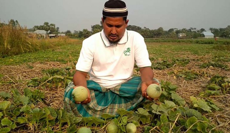 চন্দন কুমার আচার্য, বেলকুচি (সিরাজগঞ্জ) প্রতিনিধিঃ এবার আমাদের ভাল মন। মনমতো ফলন পেয়েছি। পরিবার নিয়ে ভালো থাকতে পারবো। কথাগুলো বলছিলেন আফজালপুর চরের কৃষক জব্বার মিয়া। জেলার সিরাজগঞ্জ সদর উপজেলা, বেলকুচি উপজেলা ও চৌহালী উপজেলার চর অঞ্চলে যে দিকে চোখ যায় সে দিকেই দিগন্তজোড়া মাঠে চৈত্রের বাহারি মৌসুমি ফল বাংগির সমারোহ। প্রায় সাড়ে তিন মাস নিবিড় পরিচর্যার পর মাঠে মাঠে এখন চলছে কৃষাণ-কৃষাণীদের বাংগি তোলার হিড়িক। তাদের চোখ-মুখে আনন্দ। বাংগি চাষিরা বলছেন, এ বছর কোনো প্রকার প্রাকৃতিক দুর্যোগ হানা না দেয়ায় এবং পোকামাকড়ের উপদ্রপ কম থাকায় বাংগির ভালো ফলন হয়েছে। এতে বেলকুচি উপজেলার বেড়াখারুয়া চরের কৃষাণ-কৃষাণীদের খুশিতে আত্মহারা। বাংগি চাষি বাশার সেখ (৪৫) জানান, উৎপাদিত বাংগি দ্রুত বিক্রি এবং পরিবহন ব্যয় বেড়ে যাওয়ায় তারা খরচ পুষিয়ে অন্যত্র বিক্রি করতে পারছেন না। এ কারণে অনেক ফসল খেতেই নষ্ট হবার উপক্রম হয়েছে। স্থানীয় বাজারে মৌসুমের শুরুতেই বাংগির দাম ভালো পাওয়া গেলেও রমজান মাসে শেষ নাগাদ সেই দাম দ্রুত কমতে শুরু করে বলে জানান তিনি। বর্তমানে স্থানীয় বাজারে বড় আকারের একটি বাংগির দাম ৮০ থেকে ৯০ টাকা, মাঝারি আকারের দাম ৬৫ থেকে ৭০ এবং ছোট আকারের দাম ৫০ থেকে ৫৫ টাকা। আফজাল গ্রামের কৃষক জব্বার মিয়া জানান, মাত্র তিন মাসের মাথায় বাংগির বাম্পার ফলন তাদের আলোর মুখ দেখিয়েছে। প্রায় প্রতিদিনই অটো ভ্যানের করে বেলকুচির মুকুন্দগাঁতী বাজার, চালা বাজার ও সিরাজগঞ্জ জেলার এবং চৌহালী উপজেলার বাংগি গুলো টাঙ্গাইল জেলা সদর ও নাগরপুর বাজার সহ বিভিন্ন অঞ্চলে চলে যাচ্ছে। স্থানীয় সূত্রে জানা গেছে, কৃষকরা জৈবসার তৈরি ও প্রয়োগের মাধ্যমে বাংগির বাম্পার ফলন পেয়েছেন। বেলকুচি উপজেলা সূত্রে জানা যায়, চলতি মৌসুমে প্রায় জেলার শতাধিক একর জমিতে বাংগির আবাদ হয়েছে। তিনি আরও জানান, চরে বেলে মাটি ও দোঁ-আশ মাটির কারণে বাংগির চাষ অত্যন্ত উপযোগী। যে কারণে প্রতি বছর এখানে বাংগি চাষ দিন দিন জনপ্রিয় হয়ে উঠছে।