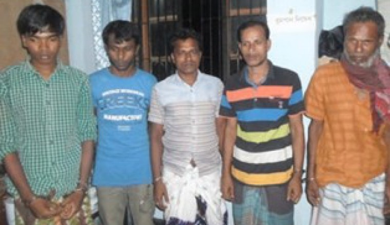 এরা হলেন, উপজেলার মুকিমপুর গ্রামের মৃত বাহাজ আলী মোল্লার ছেলে জাবেদ আলী (৫৫), আগুরিয়া দক্ষিণ পাড়ার মোঃ সরকারের ছেলে আলী সরকার (৩৮), রাজাপুর গ্রামের আকবর আলীর ছেলে আব্দুল বারেক (৩২), মাইঝাইল গ্রামের রাম চন্দ্রের ছেলে সুব্রত (২৫) ও গইটাপাড়ার শহিদুল ইসলামের ছেলে মো. আরিফ (১৮)। সিরাজগঞ্জ ডিবি পুলিশ এদেরকে গ্রেফতার করে। ডিবি পুলিশের অভিযানে মাইঝাইল গ্রামের মৃত নির্মল ঘোষের স্ত্রী রিনা ঘোষ দীর্ঘদিন যাবত নিজ বাড়িতে অবৈধভাবে দেশীয় তৈরি মদ বিক্রি করে আসছিলেন। শনিবার রাতে ৫০ লিটার মদসহ ৫ ক্রেতাকে আটক করা হয়। তবে এ সময় রিনা ঘোষ পালিয়ে যায়।