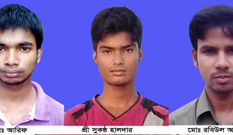 মোঃ আরিফঃ এ বছর এসএসসি পরীক্ষায় শাহজাদপুর উপজেলার ঠুটিয়া স্কুল এন্ড কলেজের বিজ্ঞান বিভাগ থেকে কৈজুরীর চরগুদী বাড়ি গ্রামের হত দরিদ্র দিনমজুর পিতা আজিজুল হাকিম ও মাতা মোছাঃ সাজেদা খাতুনের ছেলে মোঃ আরিফ অন্যের জমিতে ধান কাটা ও ধান রোপন শ্রমিকের কাজ করে সংসার ও লেখা পড়ার খরচ যুগিয়ে গোল্ডেন জিপিএ-৫ পেয়েছেন। অন্যের জমিতে হার ভাঙ্গা খাটুনি শেষে খেয়ে না খেয়ে প্রতিদিন স্কুল করেছে। এরপরও এই অভাবনীয় ফলাফল করে এলাকাবাসী কে হতভাগ করে দিয়েছে। সে জেএসসিতে গোল্ডেন জিপিএ-৫ ও ট্যালেন্টপুলে বৃত্তি, পিএসসিতে গোল্ডেন জিপিএ-৫ পেয়েছিল। তার এই অভাবনীয় সাফল্যে স্কুলের শিক্ষক ও গ্রামবাসী আনন্দিত হলেও তাদের পরিবারে নেমে এসেছে শোকের ছায়া। যমুনা নদীতে ভিটেমাটি ও বাড়ি ঘর বিলিন হয়ে যাওয়ায় সহায় সম্বলহীন বাবা মাকে নিয়ে চর গুদিবাড়ির নানা বাড়িতে ঝুপরিঘর তুলে বসবাস করে। তার হত দরিদ্র পিতা-মাতার পক্ষে এইচএসসি পড়ানোর মতো সামর্থ না থাকায় তার লেখা পড়া বন্ধ হওয়ার উপক্রম হয়ে পড়েছে। ফলে এই মেধাবী ছাত্রের শিক্ষা জীবন অকালে ঝড়ে পড়ার আশংকা দেখা দিয়েছে। সে উচ্চ শিক্ষা গ্রহন করে বুয়েট ইঞ্জিনিয়ার হতে চায়। তার হত দরিদ্র পিতা-মাতা সন্তানের এই স্বপ্ন বাস্তবায়নে দেশের ধর্ণাঢ্য ব্যাক্তিদের কাছে পড়া লেখা বাবদ আর্থিক সহযোগীতা কামনা করেছেন । শ্রী সুকন্ঠ হলদারঃ এ বছর এসএসসি পরীক্ষায় সিরাজগঞ্জের শাহজাদপুর উপজেলার কৈজুরী স্কুল এন্ড কলেজের বিজ্ঞান বিভাগ থেকে কৈজুরী হলদার পাড়া গ্রামের হত দরিদ্র মৎস্যজীবি পিতা শ্রী লক্ষন হলদার ও মাতা শ্রীমতি কুন্তি রানী হলদারের ছেলে শ্রী সুকন্ঠ হলদার যমুনা নদী থেকে মাছ ধরে বাজারে বিক্রি করে সংসার ও লেখা পড়ার খরচ যুগিয়ে গোল্ডেন জিপিএ-৫ পেয়েছেন। সে প্রতিদিন অন্যের নৌকায় গিয়ে সারারাত মাছ ধরে সকালে তা বাজারে বিক্রি করে যে আয় হতো তা বাবা মায়ের হাতে তুলে দিত। এরপর সকালে কোনদিন ভাগ্যে খাবার জুটলে খেয়ে অথবা না খেয়ে নিয়মিত স্কুলে যেত। এরপরেও সে এই অভাবনীয় সাফল্য অর্জন করে এলাকাবাসীকে অবাক করে দিয়েছে। সে জেএসসিতে গোল্ডেন জিপিএ-৫, পিএসসিতে গোন্ডেন জিপিএ-৫ ও বৃত্তি পেয়েছিল। তার এই অভাবনীয় সাফল্যে জেলে পাড়ার সবাই আনন্দে আত্মহারা হলেও তার বাবা মা চোখে ঘোর অন্ধকার দেখছে। যমুনা নদীতে ভিটেমাটি ও বাড়ি ঘর বিলিন হয়ে যাওয়ার পর ২৫শ টাকা বাৎসরিক ভাড়ায় অন্যের জায়গায় ঝুপড়ি ঘর তুলে বসবাসরত হত দরিদ্র পিতা-মাতার পক্ষে এইচএসসি পড়ানোর খরচ যোগানোর সামর্থ না থাকায় তার লেখা পড়া বন্ধ হওয়ার উপক্রম হয়ে পড়েছে। ফলে এই মেধাবী ছাত্রের শিক্ষা জীবন অকালে ঝড়ে পড়ার আশংকা দেখা দিয়েছে। সে উচ্চ শিক্ষা গ্রহন করে বুয়েট ই
