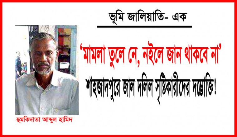 নিজস্ব প্রতিবেদক, শাহজাদপুর (সিরাজগঞ্জ) : জাল দলিলের বিরুদ্ধে প্রতিবাদ ও জাল দলিল সৃষ্টিকারী আব্দুল হামিদ গংদের বিরুদ্ধে প্রতিবাদ করায় শাহজাদপুরে হাফিজুর রহমান হেলাল নামের এক স্কিন প্রিন্ট ব্যবসায়ীকে হত্যার হুমকি দেয়া হয়েছে মর্মে অভিযোগ পাওয়া গেছে। এ ঘটনায় ওই ব্যবসায়ী গতকাল রাতে জীবনের নিরাপত্বা চেয়ে শাহজাদপুর থানায় একটি সাধারণ ডায়েরি করেছেন (জিডি নং-২২৭, তারিখ: ০৫-১০-১৭ ইং)। ব্যবসায়ী হাফিজুর রহমান হেলালের দাখিলকৃত ওই জিডি সূত্রে জানা গেছে, গত বুধবার রাত ১১ টার দিকে প্রতিদিনের ন্যায় উপজেলার নগরডালা বাজার এলাকায় তার পরিচালনাধীন প্রিন্টিং কারখানা হতে কাজ শেষ করে মোটরসাইকেল যোগে বাড়ি ফেরার পথে বড়মহারাজপুর কবরস্থান ও কালভার্ট সংলগ্ন এলাকায় (১) আব্দুল হামিদ (৫০), পিতা: মৃত নবুল্লা প্রামানিক, (২) মো: মহসিন (২৮), পিতা: আব্দুল হামিদসহ অজ্ঞাত আরও ২/৩ জন তার মোটরসাইকেলের গতিরোধ করে। গত বছরের ২৫ ডিসেম্বরে হামিদ গংয়ের বিরুদ্ধে ব্যবসায়ী হেলাল কর্তৃক ১৪৩/ ৪৪৭/ ৪৬৮/ ৪৭১/ ৩৮৫/ ৩২৩/ ৪২৭/ ৫০৬/ ১১৪ ধারায় দায়েরকৃত জাল দলিল ও চাঁদাবাজীর মামলাটি তুলে নেয়ার চাপ প্রয়োগ করেন। তাদের প্রস্তাবে রাজি না হওয়ায় এক পর্যায়ে ব্যবসায়ী হেলালকে হামিদ গং হুংকার ও দম্ভোক্তির সাথে বলেন,‘মামলা তুলে নে, না হলে তোর জান থাকবে না।’ এ ঘটনায় জীবনের নিরাপত্বা চেয়ে ওই ব্যবসায়ী থানায় সাধারণ ডায়েরি করেছেন বলে তিনি এ প্রতিবেদককে জানিয়েছেন।