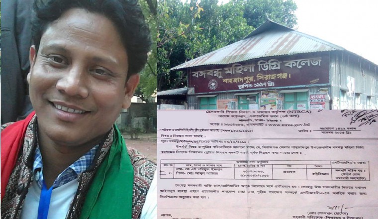 নিজস্ব প্রতিবেদক : শাহজাদপুর মহিলা কলেজের প্রভাষক ও ছাত্রীর অনৈতিক বিয়ের রেশ কাটতে না কাটতেই এবার বঙ্গবন্ধু মহিলা কলেজের এক প্রভাষক দীর্ঘদিন জাল সনদে চাকরির চাঞ্চল্যকর তথ্য ফাঁস হলো। ভূয়া শিক্ষক নিবন্ধন সনদ দিয়ে চাকরি নেয়ার বিষয়টি প্রমানিত হওয়া এবং ওই বিরুদ্ধে আইনানুগ প্রয়োজনীয় ব্যবস্থা নেয়ার নির্দেশনা থাকা সত্বেও প্রায় ১৬ মাস ধরে বহাল তবিয়তে চাকরি করছেন বঙ্গবন্ধু মহিলা কলেজের রাষ্ট্রবিজ্ঞান বিভাগের প্রভাষক কে এম শরিফুল ইসলাম। ভূয়া শিক্ষক নিবন্ধন সনদ জাল প্রমানিত হবার পরও দীর্ঘদিন ওই প্রভাষকের বিরুদ্ধে আইনানুগ কোন ব্যবস্থা না নেয়ায় জনমনে নানা প্রশ্নের সৃষ্টি হয়েছে। জানা গেছে, ইতিপূর্বে প্রভাষক কে এম শরিফুল ইসলাম (মনি)’র বিরুদ্ধে জাল সনদ জমা দিয়ে বঙ্গবন্ধু মহিলা কলেজে প্রভাষক পদে চাকরি নেয়ার অভিযোগ ওঠে। ওই অভিযোগের প্রেক্ষিতে গত ২০১৫ খ্রিষ্টাব্দের ৩০ নভেম্বর বেসরকারি শিক্ষক নিবন্ধন ও প্রত্যয়ন কর্তৃপক্ষ ( এনটিআরসিএ ) কর্তৃক ও সহকারী পরিচালক ( শিক্ষাতত্ত্ব ও শিক্ষামান ) মো: লোকমান হোসেন স্বাক্ষরিত এ সংক্রান্ত একটি নির্দেশনা ( যাহার স্মারক নং- বেশিনিক/শি.শি/সনদ যাচাই (সকল)/৫০৯(অংশ-১)/২০১৫/২৬৬ ) বঙ্গবন্ধু মহিলা কলেজের অধ্যক্ষ বরাবর প্রেরণ করা হয়, যার অনুলিপি সিরাজগঞ্জ জেলা প্রশাসক, জেলা শিক্ষা অফিসার ও শাহজাদপুর থানার ভারপ্রাপ্ত কর্মকর্তাকেও প্রদান করা হয়। ওই পত্রে উল্লেখ করা হয়েছে, ‘ যেহেতু সনদধারী ব্যক্তি জাল/জালিয়াতির আশ্রয় নিয়েছেন মর্মে প্রতীয়মান হয়। সেহেতু উক্ত সনদধারীর বিরুদ্ধে যথাযথ আইনানুগ ব্যবস্থা গ্রহণে প্রয়োজনীয় পদক্ষেপ নেয়া এবং গৃহিত পদক্ষেপ সম্পর্কে এনটিআরসিএ- কে অবহিত করার জন্য নির্দেশক্রমে অনুরোধ করা হলো।’ অনুলিপি প্রাপ্তির পর সিরাজগঞ্জ জেলা শিক্ষা অফিসার লায়লা খানম প্রয়োজনীয় ব্যবস্থা গ্রহণের জন্য গত ০৩/০১/২০১৬ খ্রিষ্টাব্দ তারিখে উপজেলা মাধ্যমিক শিক্ষা অফিসারকে নির্দেশনা দেন ( যাহার স্মারক নং- জেশিঅ/সিরাজ/২০১৬/২৫৩৯ )। উপরোক্ত নির্দেশনার দীর্ঘদিন অতিবাহিত হলেও অভিযুক্ত প্রভাষকের বিরুদ্ধে কোন ব্যবস্থা না নেয়ায় তিনি অদ্যবধি বহাল তবিয়তে চাকরি করে যাচ্ছেন। এ ব্যাপারে বঙ্গবন্ধু মহিলা কলেজের বর্তমান অধ্যক্ষ মতিউর রহমান বলেন, ‘ আমি অল্পদিন হলো অধ্যক্ষ পদে যোগদান করেছি। বিষয়টি অনেক পূর্বের। এতদিন ওই প্রভাষকের বিরুদ্ধে ব্যবস্থা নেয়া হয়নি কেনো তা আমি অবগত নই।’ ওই সময়ের ভারপ্রাপ্ত অধ্যক্ষ শাহ আলম এনটিআরসিএ কর্তৃক প্রেরিত পত্র প্রাপ্তির কথা স্বীকার করে বলেন, ‘ পত্র প্রাপ্তির পর অভিযুক্ত প্রভাষক কে এম শরিফুল ইসলামকে কারণ দর্শানোর নোটিশ প্রদান করা হয়েছিলো। কলেজ পরিচালনা পর
