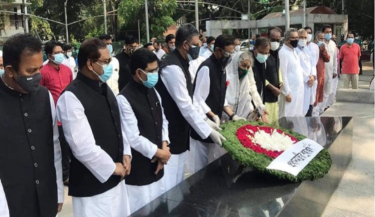 ঐতিহাসিক মুজিবনগর দিবসে বঙ্গবন্ধুর প্রতিকৃতিতে শ্রদ্ধা জানিয়েছেন প্রধানমন্ত্রী শেখ হাসিনা। শনিবার (১৭ এপ্রিল) সকালে ধানমন্ডি-৩২ এ প্রধানমন্ত্রীর পক্ষে শ্রদ্ধা জানান আওয়ামী লীগের সাধারণ সম্পাদক এবং সড়ক পরিবহন ও সেতুমন্ত্রী ওবায়দুল কাদের। এ সময় উপস্থিত ছিলেন আওয়ামী লীগের প্রেসিডিয়াম সদস্য মতিয়া চৌধুরী, যুগ্ম সাধারণ সম্পাদক ড. হাছান মাহমুদ, আ ফ ম বাহাউদ্দীন নাছিম, আফজাল হোসেন, সাংগঠনিক সম্পাদক আহমদ হোসেন, বিএম মোজাম্মেল হক, মির্জা আজম, শফিউল আলম চৌধুরী নাদেল, বিজ্ঞান ও প্রযুক্তি সম্পাদক ইঞ্জিনিয়ার আবদুস সবুর প্রমুখ। আজ ১৭ এপ্রিল, ঐতিহাসিক মুজিবনগর দিবসের সুবর্ণজয়ন্তী। বাংলাদেশের স্বাধীনতাসংগ্রাম তথা মুক্তিযুদ্ধের ইতিহাসে এক অবিস্মরণীয় দিন। আজ থেকে ৫০ বছর আগে ১৯৭১ সালের এই দিনে তত্কালীন কুষ্টিয়া জেলার মেহেরপুর মহকুমার বৈদ্যনাথতলার আম্রকাননে গণপ্রজাতন্ত্রী বাংলাদেশ সরকারের প্রথম মন্ত্রিসভা শপথ গ্রহণ করে। রচিত হয় স্বাধীন বাংলাদেশের নতুন ইতিহাস। ১৯৭১ সালের ২৬ মার্চ জাতির পিতা বঙ্গবন্ধু শেখ মুজিবুর রহমান স্বাধীনতা ঘোষণা করেন। এর তিন সপ্তাহ পর বৈদ্যনাথতলা নামে পরিচিত ঐ বিশাল আমবাগান এলাকাকেই পরে ‘মুজিবনগর’ নাম দিয়ে বাংলাদেশের অস্থায়ী রাজধানী ঘোষণা করা হয়েছিল। বাংলাদেশকে পাকিস্তানি হানাদার বাহিনীর দখলমুক্ত করতে মুজিবনগর সরকারের নেতৃত্বেই পরিচালিত হয় সশস্ত্র মুক্তিযুদ্ধ। মুজিবনগর সরকারের দক্ষ নেতৃত্ব ও পরিচালনায় ৯ মাসের সশস্ত্র মুক্তিযুদ্ধের সফল পরিণতিতে ১৯৭১ সালের ১৬ ডিসেম্বর বিশ্ব মানচিত্রে বাঙালির নিজস্ব আবাসভূমি স্বাধীন-সার্বভৌম গণপ্রজাতন্ত্রী বাংলাদেশের অভ্যুদয় ঘটে।