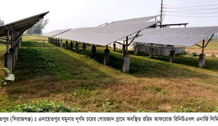যেখানে মানুষের চলাচলের জন্য নেই ভাল যাতায়াত ব্যবস্তা, নেই চিকিৎসা ব্যবস্তা, সেখানে সোলার বিদ্যুৎ এর আলোয় আলোকিত হয়েছে যমুনা চরবাসী। এই অসাধ্য সাধন করেছে রহিম আফরোজ রিনিউএবল এনার্জি লিমিটেড। তাদের এই মহৎ উদ্দেগের কারনে চরবাসী আজ আলোকিত হতে পেরেছে। অন্ধকার আচ্ছন্ন চরবাসী পেয়েছে আলোর দেখা। রাতের অন্ধকার কাটাতে এক সময় কুপি কিংবা হারিকেনের আলোই ছিল চরবাসীর মূল ভরসা। কিন্তু এখন তা অতীত হয়েছে। কারণ, দুর্গম চরে পৌঁছে গেছে সোলার প্যানেল বিদ্যুৎ সংযোগ। আর সেই সংযোগে ঘরে ঘরে জ্বলছে আলো। ছাত্র-ছাত্রীতাছারা লেখা পড়া করতে আরো বেশি উৎসাহ পাচ্ছে। চর বাসী ডাকাতের ভয়ে থাকত এখন সোলার বিদ্যুৎ এর কারণে গ্রামে গ্রামে বাতি হওয়ায় আলোকিত চরে পরিণত হয়েছে ফলে চোর ডাকাতের উপদ্রুপ অনেকটাই কমেছে। এ বিষয়ে প্রজেক্টট ইনচার্জ মুজাম্মেল হক জানান আমাদের এই প্রজেক্টটি ৮০ কিলো ওয়াট পিক বিদ্যুৎ উৎপাদন করতে সক্ষম।এখানে ২৫০ টি প্যানেলের মাধ্যমে বিদ্যুৎ উৎপাদন হয় এবং তিনটি ফেজের মাধ্যমে বিদ্যুৎ প্রবাহিত হয়। ৬ কিলো মিটার বিস্তৃত ২২০ টি পরিবার এই সেবার আওতায় রয়েছে এবং ২৫ বছরের প্রজেক্ট নিয়ে কোম্পানিটি কাজ করছে।সেবার আওতার গ্রাম গুলো হলো বাইনতিয়ার চর,গোরজান,নওহাটা।গ্রাহকদের প্রিপেইড কার্ডের মাধ্যমে বিল পরিশোধ করতে হয় এবং প্রিপেইড মিটারের আওতাদিন সকল সংযোগ। নওহাটার গ্রামের স্থানীয় বাসিন্দা মোস্তফা মোল্লা বলেন এই বিদ্যুৎ আমাদের এলাকার মানুষের জীবন যাত্রার মান আমুল পরিবর্তন এনেছে। আগে আমরা মোবাইল ফোন চার্জ দিতে পারতাম না,চার্জের জন্য নদীপার দিয়ে মোবাইল চার্জ দিতে হতো।এখন মোবাইল চার্জ টিভি,ফ্রিজ সব চালাতে পারি কোন সমস্যা হয় না।আমাদের অনেক উপকার হয়েছে এবং এলাকার মানুষ খুবই আনন্দিত।