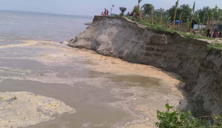 ভয়াবহ নদী ভাঙনের মুখে সিরাজগঞ্জের শাহজাদপুর উপজেলার বিস্তৃর্ণ জনপদ। গত এক সপ্তাহে যমুনার করাল গ্রাসে বিলীন হয়ে গেছে বসতবাড়ি ও ফসলি জমি। বাদ পড়েনি শিক্ষা প্রতিষ্ঠানও। আতঙ্কে নির্ঘুম রাত কাটছে নদীতীরের বাসিন্দাদের। তবে পানি উন্নয়ন বোর্ড বলছে, ভাঙন রোধে সাতশ’ কোটি টাকার প্রকল্প নেয়া হয়েছে। আম্পানের পর পানি কমলেও থামেনি ভাঙন। প্রতিদিনই কোথাও না কোথাও নদী গ্রাস করে নিচ্ছে জমি, ছোট হচ্ছে স্থলভাগের মানচিত্র। বর্ষা মৌসুমের আগেই ভয়ংকর রূপ নিচ্ছে যমুনা নদী। গত কয়েকদিনে, তীব্র ভাঙনে বিলীন হয় সিরাজগঞ্জের শাহজাদপুর উপজেলার বাক্ষ্মণগ্রাম, আরকান্দি, বাওইখোলা ও আশপাশের গ্রামের কয়েকশ’ ঘর। আতঙ্কে অনেকে সরিয়ে নিচ্ছেন ঘরবাড়ি। করোনার থাবায় কর্মহীন হয়ে পড়া মানুষগুলো এবার মাথা গোঁজার ঠাঁইটুকু হারিয়ে চরম বিপাকে। যমুনার কড়াল গ্রাসে কমছে না দুর্দশা। একজন বলেন, নদীতে আমার সব গেছে। এখন আমার কিছুই নেই। আরেকজন বলেন, সব সময় আতঙ্কে থাকি কখন যেনো নদী সব কেড়ে নেয়। বসতবাড়ি ছাড়াও বিলীন হচ্ছে ফসলি জমি, গাছপালাসহ বিস্তৃর্ণ জনপদ। ভেঙে গেছে স্কুল ও ধর্মীয় প্রতিষ্ঠানের স্থাপনাও। এতে আসন্ন বর্ষা মৌসুম নিয়ে চরম আতঙ্কে নদীতীরের মানুষ। একজন বলেন, নদীর তীরটা যেনো ভালো করে বেঁধে দেয়। এ অবস্থায় স্থায়ী বাঁধসহ নানা পরিকল্পনার কথা জানিয়েছেন সিরাজগঞ্জ পানি উন্নয়ন বোর্ডের নির্বাহী প্রকৌশলী শফিকুল ইসলাম। তিনি বলেন, সাড়ে ৬ কিলোমিটার জায়গায় একটা স্থায়ী কাজ করার জন্য ৭শ’ কোটি টাকার একটা প্রকল্প পরিকল্পনা কমিশনে আছে। সেটি অনুমোদন হলে স্থায়ী কাজ হবে। মঙ্গলবার পর্যন্ত শাহজাদপুর উপজেলার দেড় কিলোমিটার এলাকা বিলীন হয়ে গেছে যমুনা নদীতে। হুমকিতে আরও অন্তত দশটি গ্রামের বিস্তৃর্ণ জনপদ। সূত্রঃ সময় নিউজ টিভি