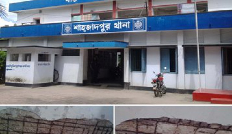 মোঃ মুমীদুজ্জামান জাহান, শাহজাদপুর থেকেঃ শাহজাদপুর থানা ভবনটি চরম ঝুকি পূর্ণ হয়ে উঠেছে। প্রায় ৩৪ বছর আগে ১৯৮১ সালে ১৬ কক্ষ বিশিষ্ট দ্বিতল এ ভবনটি নির্মান করা হয়। বাহিরে রংচঙে চকচকে থাকলেও পুরো ভবনটি সংস্কারের অযোগ্য হয়ে পড়েছে। এ ভবনটির নিচতলার এস আই পদ মর্যাদার পুলিশ কর্মকর্তাদের বসার দক্ষিণের কক্ষ ও আলামত সংরক্ষণকারী মালখানা কক্ষটির ছাদের একাধিক অংশে পলেস্তারা খুলে পড়ে লোহার রড বের হয়ে পড়েছে। অনেক স্থানে আবার লোহার রডও খসে খসে পড়ছে। এ অবস্থায় শাহজাদপুর থানায় কর্মরত প্রায় ৬০ জন কর্মকর্তা ও কনস্টেবল এ ভবনের ছাদের নিচে জীবনের ঝুকি নিয়ে প্রতিদিন কাজ করছে। গত ২৪ জুলাই শুক্রবার রাতে কর্মরত অবস্থায় থানার মুন্সি কনস্টেবল এনামুল হকের মাথা ও পিঠের উপর হঠাৎ ছাদের পলেস্তারা খসে পড়লে সে গুরুতর আহত হয়। তাকে আশঙ্কা জনক অবস্থায় স্থানীয় হাসপাতালে ভর্তি করে চিকিৎসা দেয়া হয়। বর্তমানে তিনি শঙ্কা মুক্ত হয়ে ওই ঝুকিপূর্ণ স্থানে বসেই তাকে অফিসের কাজ কর্ম করতে হচ্ছে। এ ব্যাপারে কনস্টেবল এনামুল হক সহ কয়েকজন পুলিশ কর্মকর্তা জানান, বিকল্প কোন উপায় না থাকায় জীবনের ঝুকি নিয়েই এখানে বসে কাজ করতে হচ্ছে। এ ঘটনার সত্যতা স্বীকার করে শাহজদপুর থানার অফিসার ইনচার্জ রেজাউল হক, এসআই রেজাউল করিম ও এসআই শাহজাহান জানান, এ দুর্ঘটনার পর পর বিষয়টি সিরাজগঞ্জ জেলা পুলিশ সুপারকে অবহিত করা হয়েছে। পুলিশ সুপারের পক্ষ থেকে একটি তদন্ত টিম ঘটনা স্থল পরিদর্শন করে উর্ধতন কর্তৃপক্ষ বরাবর রিপোর্ট প্রেরণ করেছে। এছাড়া ঝুকি পূর্ণ এ ভবনটি ভেঙ্গে এর স্থলে নতুন ও আধুনিক মান সম্পন্ন শাহজাদপুর থানা ভবন নির্মানের দাবি জানিয়ে সংস্লিষ্ট কর্তৃপক্ষ বরাবর আবেদন করা হয়েছে। কিন্তু উর্ধ্বতন কর্তৃপক্ষ এখনো পর্যন্ত এ ব্যাপারে কোনো ব্যবস্থা না নেওয়ায় জীবনের ঝুকি নিয়েই কাজ কর্ম করতে হচ্ছে। তারা আরও জানান, একটু বৃষ্টি হলে ভবনের ছাদ ও দেওয়াল চোয়ায়ে পানি পড়ে। এতে বিভিন্ন মামলার গুরুত্বপূর্ণ আলামত ও গুরুত্বপূর্ণ নথিপত্র ভিজে নষ্ট হয়ে যাচ্ছে। ইতি মধ্যেই বহু কাজগপত্র ও আলামত নষ্ট হয়ে গেছে। এতে মামলা পরিচালনায় নানা দুর্ভোগের শিকার হতে হচ্ছে। গতকাল মঙ্গলবার দুপুরে শাহজাদপুর থানা ভবনটি সরেজমিনে পরিদর্শন করে দেখা যায়, এ ভবনের নিচ তলার সামনের প্রথম রুমটি ওয়ারলেস অপারেটর ও ডিউটি অফিসারের রুম হিসেবে ব্যবহার করা হয়। তার পাশের রুমে বসেন শাহজাদপুর থানার অফিসার ইনচার্জ। তার দক্ষিনের বড় হল রুমটির পশ্চিম অংশে বসেন ৮ জন এসআই পদমর্যাদার কর্মকর্তা এবং পূর্ব অংশে বসেন থানার মুন্সি সহ অন্যান্য কর্মচারী বৃন্দ। এর পূর্ব উত্তরের রুমটিতে ৭ জন এএসআই বসেন। এর পর শিরি ঘর পার হয