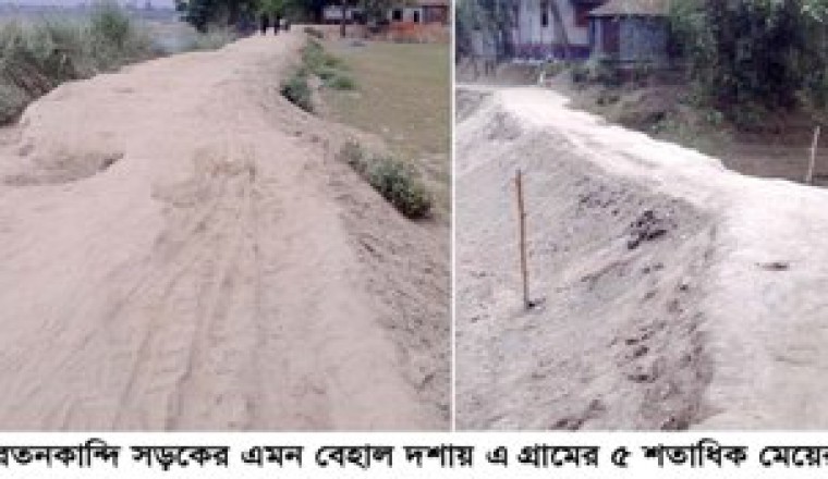 শাহজাদপুর প্রতিনিধিঃ শাহজাদপুর উপজেলা সদর থেকে রতনকান্দি গ্রামের দুরত্ব মাত্র ২ কিলোমিটার। এ গ্রামে উত্তর প্রান্ত থেকে দক্ষিণ প্রান্ত পর্যন্ত যাতায়াতের জন্য রয়েছে ৩ কিলোমিটার দৈর্ঘের মাত্র ১টি কাঁচা সড়ক। এ সড়কের বাদলবাড়ী মাঠ সংলগ্ন করতোয়া নদী তীরের বাঁশতলা এলাকার প্রায় ২০০ ফুট জায়গা নদী ভাঙ্গনে বিলিন হওয়ায় এখান দিয়ে যানবাহন চলাচলতো দুরের কথা পথচারিদের চলাচলেও চরম দূভোগ পোহাতে হয়। এছাড়া মধ্য পাড়া বাজারের উত্তর পার্শ্বের সড়কটির দুপামের মাটি বন্যার পানিতে ধসে যাওয়ায় এখানেও যাতায়াতের চরম সমস্যা। এ ছাড়া এ সড়কের বিভিন্ন স্থানে বড় বড় গর্তের সৃষ্টি হওয়ায় সড়কটি সম্পূর্ণ চলাচলের অনুপযোগি হয়ে পড়েছে। সড়কটি নির্মাণে গত বছর ১ কোটি ২০ লাখ টাকা প্রাক্কলন ব্যায় নির্ধারন করে আহ্বান করা হয়। সিরাজগঞ্জের একটি ঠিকাদারী প্রতিষ্ঠান এ কাজ পেলেও লোকসানের ভয়ে মাটি না পাওয়ার অজুহাতে কার্যাদেশ হাতে পেয়েও কাজ করেনি। ফলে কার্যাদেশের মেয়াদ শেষ হওয়ায় সিরাজগঞ্জ এলজিইডি বিভাগ ঠিকাদারের এ কার্যাদেশ বাতিল করে দেয়। ফলে দীর্ঘ দিনেও সড়কটি আর নির্মাণ করা হয়নি। এ সড়কটি নির্মাণ না হওয়ায় এলাকাবাসীর ব্যবসা বাণিজ্যে চরম ধস নেমে এসেছে। এছাড়া এ সড়কটি খারাপ হওয়ার কারনে এ গ্রামের প্রায় ৫ শতাধিক বিবাহ যোগ্য যুবতী মেয়েদের বিবাহের জন্য উপযুক্ত পাত্র পাওয়া দূরহ হয়ে পড়েছে। এলাকাবাসী জানায়, রাস্তা খারাপের কারনে এ গ্রামের ছেলেদের সাথে কেউ মেয়ে বিয়ে দিতে চায় না। আবার মেয়েদের কেউ বিয়ে করতে চায় না। কেউ বিয়েতে রাজি হলেও ৪ লাখ টাকা থেকে ৫ লাখ টাকা যৌতুক দিতে হয়। যে সব পরিবারের এই মোটা অংকের যৌতুক দেওয়ার সমর্থক নেই সেসব পরিবারের মেয়েরা সুশিক্ষিত ও সুন্দরী হলেও তাদের অনেকেরই বিবাহ হচ্ছেনা। বিবাহের জন্যে বর পক্ষকে নগরডালা বাজারে গাড়ী থেকে নেমে ৩ কিলোমিটার পথ পায়ে হেটে পাড়ি দিতে হয়। এ সড়ক এতই খারাপ যে, ভ্যান রিক্সা পর্যন্ত এ সড়ক দিয়ে চলাচল করতে পারেনা। বাই সাইকেল বা মটরসাইকেল নিয়ে চলতে গেলে একাধিক স্থানে দূর্ঘটনার কবলে পড়তে হয়। এ ব্যাপারে তাঁত ব্যাবসায়ী আব্দুস সামাদ,শাহজাহান আলী,রইচ উদ্দিন জানান, সুতা ও তাঁতের শাড়ী লুঙ্গি মাথায় করে হাট থেকে আনা নেওয়া করতে হয়। এ জন্য তাদের প্রতিদিন ২০০ থেকে ৪০০ টাকা কুলি ও ভ্যান খরচ দিতে হয়। তারা জানায় তাদের পরিবারের একাধিক মেয়েদের রাস্তা খারাপের কারনে ভাল বিবাহ হচ্ছে না। ভাল পাত্র না পাওয়ায় ডিগ্রি পাশ,এইচএসসি পাশ মেয়েদের কে এসএসসি বা এইচএসসি পাশ বেকার ছেলের সাথে মোটা অংকের যৌতুক দিয়ে বিয়ে দিতে হয়। হাবিবুল্লাহ নগর ইউনিয়ন পরিষদ সূত্রে জানা যায়, এ ইউনিয়নে ১,২