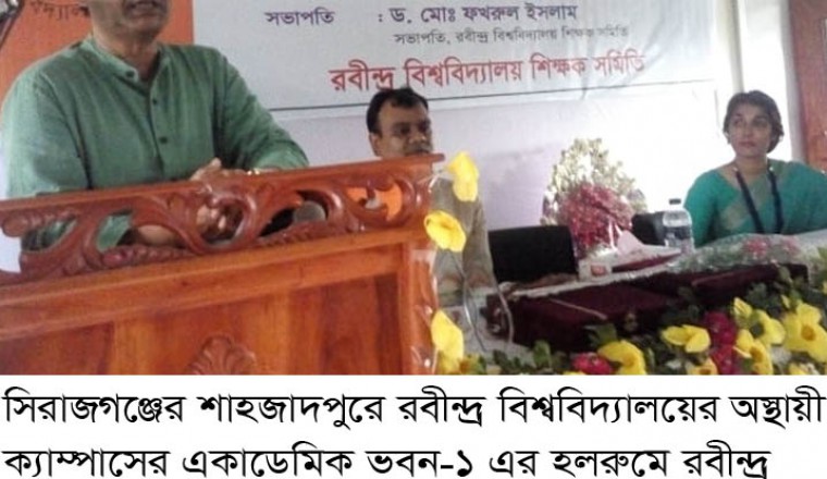 নিজস্ব প্রতিনিধিঃ রবীন্দ্র বিশ্ববিদ্যালয়ের উপাচার্য ড. প্রফেসর বিশ্বজিৎ ঘোষ বলেছেন, রবীন্দ্র বিশ্ববিদ্যালয় ঢাকায় স্থানান্তরের বিষয়টি সম্পূর্ণ গুজব। এ ছাড়া একশ কোটি টাকা ব্যায়ে ঢাকায় জায়গা কেনার বিষয়টিও সম্পূর্ণ মিথ্যা। একটি স্বার্থান্বেষী মহল বিভ্রান্ত ছড়াতে এ ধরণের প্রপাগান্ড ছড়াচ্ছে। তিনি আরো বলেন, রবীন্দ্র বিশ^বিদ্যালয় শাহজাদপুরে প্রতিষ্ঠিত হয়েছে। এটি শাহজাদপুরেই থাকবে। রোববার সকালে রবীন্দ্র বিশ্ববিদ্যালয় শিক্ষক সমিতির অভিষেক ও নবনির্বাচিত কমিটির সংবর্ধনা অনুষ্ঠানে প্রধান অতিথির বক্তেব্যে তিনি এসব কথা বলেন। সিরাজগঞ্জের শাহজাদপুর উপজেলার বিসিক বাসস্ট্যান্ড এলাকায় অবস্থিত রবীন্দ্র বিশ্ববিদ্যালয়ের অস্থায়ী ক্যাম্পাসের একাডেমিক ভবন-১ এর হলরুমে এ অভিষেক অনুষ্ঠান অনুষ্ঠিত হয়। এতে প্রধান অতিথি ছিলেন, রবীন্দ্র বিশ্ববিদ্যালয়ের উপাচার্য প্রফেসর ড.বিশ্বজিৎ ঘোষ। তিনি আরো বলেন,রবীন্দ্র বিশ্ববিদ্যালয়ে কোন অনিয়ম দূর্ণীতি হয়নি। আদালতে যে মামলা হয়েছে তা সম্পূর্ণ মিথ্যা। রবীন্দ্র বিশ্ববিদ্যালয়ের রবীন্দ্র অধ্যায়ন বিভাগের চেয়ারম্যান ও নবনির্বাচিত শিক্ষক সমিতির সভাপতি ড.ফখরুল ইসলামের সভাপতিত্বে অনুষ্ঠিত এ অভিষেক অনুষ্ঠানে আরো বক্তব্য রাখেন, রবীন্দ্র বিশ্ববিদ্যালয়ের রবীন্দ্র অধ্যায়ন বিভাগের প্রভাষক লায়লা ফেরদৌস হিমেল, প্রভাষক জাবেদ ইকবাল, সাংস্কৃতিক ঐতিহ্য ও বাংলাদেশ অধ্যায়ন বিভাগের প্রভাষক ফারহান ইয়াসমিন, প্রভাষক মোঃ আজিম উদ্দিন প্রমুখ। উল্লেখ্য, নবনির্বাচিত শিক্ষক সমিতির সভাপতি ড. ফখরুল ইসলাম, সাধারণ সম্পাদক ফারহান ইয়াসমিন, কোষাধক্ষ্য লায়লা ফেরদৌস হিমেল ও কার্যহির্বাহী সদস্য মোঃ রিফাত-উর-রহমান, আরিফুল ইসলাম, বরুণ চন্দ্ররায় ও শারমিন সুলতানাকে অভিষেক অনুষ্ঠানে সংবর্ধনা দেওয়া হয়। এ ছাড়া এ বিশ্ববিদ্যালয়ের ১২জন নবীব শিক্ষককে এ অনুষ্ঠানে আনুষ্ঠানিকভাবে বরণ করে নেয়া হয়। রবীন্দ্র বিশ্ববিদ্যালয়ের রবীন্দ্র অধ্যায়ন বিভাগের চেয়ারম্যান ও নবনির্বাচিত শিক্ষক সমিতির সভাপতি ড.ফখরুল ইসলাম তার বক্তব্যে বলেন, রবীন্দ্র বিশ্ববিদ্যালয়ের উপাচার্য ড.প্রফেসর বিশ্বজিৎ ঘোষের বিরুদ্ধে মিথ্যা মামলা দায়েরের প্রতিবাদে ও এ মামলা অবিলম্বে প্রত্যাহারের দাবীতে শাহজাদপুরে অচিরেই শিক্ষক ও শিক্ষার্থীদেও পক্ষ থেকে মানববন্ধন ও সমাবেশ করা হবে।