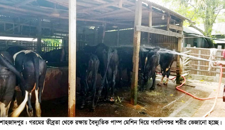 হাসানুজ্জামান তুহিন : রমজান মাসের শুরু থেকেই দেশজুড়ে চলছে প্রচন্ড দাবদাহ। গরমে মানুষেরই নাভিঃশ্বাস অবস্থা। এই দাবদাহে শাহজাদপুরের হাজার হাজার খামারিরা তাদের গবাদিপশু নিয়ে পড়েছেন বিপাকে। এতে দুধের উৎপাদন অনেকটাই হ্রাস পেয়েছে। উপজেরা প্রাণি সম্পদ অধিদপ্তর সূত্রে জানা গেছে, শাহজাদপুরের প্রায় পৌনে ৩ লাখ গরু রয়েছে। আর খামার রয়েছে ১১ হাজার। এর মধ্যে উন্নতজাতের দুধের গাভী রয়েচে। এ ছাড়াও প্রায় ১ লাখ ছাগল ভেড়া রয়েছে। দীর্ঘদিন ধরে চলমান দাবদাহে পুকুর, নদী ও জলাশয়ের পানি প্রচন্ড গরম হওয়ায় এ পানিতে গরুকে গোসল করানো সম্ভব হচ্ছে না। সামর্থবান খামারিরা বাড়িতে পানির পাম্প বসিয়ে নিলেও ছোট ছোট খামারিরা গরু নিয়ে পড়েছে মহাবিপাকে। উপজেলার পোতাজিয়া ইউনিয়নের চরাচিথুলিয়া গ্রামের জমেলা বেগম, পোরজনা ইউনিয়নের ছোট মহারাজপুর গ্রামের বসির উদ্দিন, গাড়াদহ ইউনিয়নের গাড়াদহ গ্রামের ইয়াকুব আলী, সৈয়দ আলী নরিনা ইউনিয়নের জুগনীদহ গ্রামের জুরান ফকির বিভিন্ন সমিতি থেকে ঋণ নিয়ে এসে বাছুর কিনে তা লালন পালন করছেন। এগুলো বড় হলে তা সামনের কোরবানি ঈদে বিক্রির জন্য প্রস্তুত করা হচ্ছে। প্রচন্ড গরমে তাদের পক্ষে গরু লালন পালন করা কঠিন হয়ে পড়েছে। সবচেয়ে বেশি বিপাকে পড়েছেন দুগ্ধ খামারিরা। প্রচন্ড গরমে হিটস্ট্রোকের হাত থেকে রক্ষার জন্য দুধের গাভীকে দিনে তিন থেকে চার বার ঠান্ডা পানিতে গোসল করানোর জন্য চিকিৎসকেরা পরামর্শ দিয়েছেন। প্রবীণ চিকিৎসক ডা. গোলজার হোসেন জানান, আমাদের দেশে খামারিরা এখন উন্নত জাতের গাভী লালন পালন করে থাকে। শীত মৌসুমে এসব গাভী থেকে পর্যাপ্ত পরিমাণ দুধ পাওয়া গেলেও গরমে কাক্সিক্ষত পরিমাণ দুধ পাওয়া যাচ্ছে না। এ জন্য ঠান্ডা পানিতে গাভীকে দিনে তিন থেকে চারবার গোসল করানো দরকার। উপজেলা প্রানিসম্পদ কর্মকর্তা ডা. মিজানুর রহমান জানান, এই দাবদাহে হিটস্ট্রোকের হাত থেকে রক্ষা করতে গাবাদি প্রাণীকে পর্যাপ্ত বাতাস ও ঠান্ডা স্থানে রাখা। পাশাপাশি দিনে তিন তেকে চারবার ঠান্ডা পািনি দিয়ে গোসল করানো। এ ব্যাপারে পৌর এলাকার আব্দুর রশিদ ফকির জানান, মাঠেও প্রচন্ড গরম আবহওয়া এবং বাড়িতে ফ্যান ও দিনে তিন থেকে চারবার পানিতে দিয়ে গোসল করিয়েও গরুকে ঠিক রাখা যাচ্ছে না। অপরদিকে, একটানা দাবদাহ না থাকলেও দিনে প্রচন্ড গরম এবং রাতে তুলনামূলক হারে ঠান্ডা পড়ায় গরুকে আবার বেশি করে গায়ে পানিও দেয়া যাচ্ছে না। এতে করে গরুর গায়ে সর্দি জ্বর আশার ভয় রয়েছে।