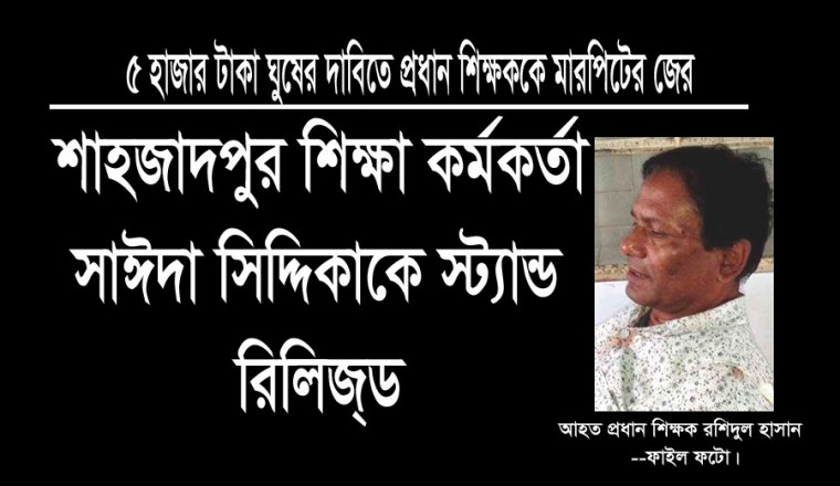 শাহজাদপুর (সিরাজগঞ্জ) প্রতিনিধি : সিরাজগঞ্জের শাহজাদপুর উপজেলা প্রাথমিক শিক্ষা কর্মকর্তা সাইদা সিদ্দিকাকে স্ট্যান্ড রিলিজড করা হয়েছে। গত ২৬ এপ্রিল শাহজাদপুর উপজেলা প্রাথমিক শিক্ষা কার্যালয়ের অফিস সহকারি আব্দুর রশিদ ঘুষের টাকা না পেয়ে ডায়া সরকারি প্রাথমিক বিদ্যালয়ের প্রধান শিক্ষক রাশিদুল হাসানের মাথা ফাটিয়ে দেয়ার ঘটনায় তাকে গত ৮ মে এই স্ট্যান্ড রিলিজড করা হয়। ইতিমধ্যেই তিনি তার নতুন কর্মস্থল কুষ্টিয়া সদর উপজেলায় যোগদান করেছেন বলে প্রাথমিক শিক্ষা কারর্য্যলয়ের একটি সূত্র নিশ্চিত করেছেন। এদিকে, এ ঘটনায় অফিস সহকারী আব্দুর রশিদের বিরুদ্ধে এখনও কোন ব্যবস্থা না নেয়ায় শাহজাদপুরে কর্মরত সকল প্রাথমিক শিক্ষকদের মধ্যে চরম ক্ষোভ ও অসন্তোষ বিরাজ করছে। তারা এ ঘটনার তীব্র নিন্দ্রা ও প্রতিবাদ জানিয়েছেন। আজ শনিবার বিকেলে শিক্ষক নেতারা জানান, গত ২৬ এপ্রিল বুধবার সকালে শাহজাদপুর উপজেলা প্রাথমিক শিক্ষা অফিস কার্যালয়ে ডায়া সরকারী প্রাথমিক বিদ্যালয়ের প্রধান শিক্ষক রশিদুল হাসান তার বন্ধু নন্দলালপুর সরকারি প্রাথমিক বিদ্যালয়ের প্রধান শিক্ষক মোঃ আলাউদ্দিনের (অবঃ) লামগ্রান্ড বিলের টাকা উত্তোলনের জন্য যান। এ সময় ওই অফিসের অফিস সহকারি আব্দুর রশিদ সরকার তার কাছে ৫ হাজার টাকা ঘুষ দাবি করেন। তিনি দাবীকৃত ঘুষের ৫ হাজার টাকা দিতে অস্বীকার করলে অফিস সহকারী আব্দুর রশিদ তার উপর ক্ষিপ্ত হয়ে ওঠেন। এ নিয়ে দু’জনের মধ্যে বাকবিতন্ডার এক পর্যায়ে আব্দুর রশিদ প্রধান শিক্ষক রশিদুল হাসানের মাথায় আঘাত করে মাথা ফাটিয়ে দেন। উপজেলা প্রাথমিক শিক্ষক সমিতির সভাপতি ময়নুল ইসলাম অভিযোগ করে বলেন, ‘ কর্মকর্তাদের যোগসাজসে অফিস সহকারী আব্দুর রশিদ ঘুষ ছাড়া কোন কাজ করে দেন না শিক্ষকদের। অন্যায়ভাবে তাদের সহকর্মী প্রধান শিক্ষককে মারধরের ঘটনার প্রতিবাদে তারা মানববন্ধন ও বিক্ষোভ কর্মসূচীও করেছেন । পুলিশ দুর্নীতিবাজ রশিদকে গ্রেফতার করলেও তার বিরুদ্ধে এখনও বিভাগীয় ব্যবস্থা গ্রহন করা হয়নি। ওই ন্যাক্কারজনক ঘটনায় কেবলমাত্র উপজেলা প্রাথমিক শিক্ষা কর্মকর্তাকে স্ট্যান্ড রিলিজড করলেই চলবে না। সুষ্ঠ তদন্ত সাপেক্ষে দোষীদের বিরুদ্ধে দ্রুত ব্যবস্থা গ্রহণ করতে হবে।’ এ ব্যাপারে উপজেলা শিক্ষা কর্মকর্তা সাইদা সিদ্দিকা ঘটনার সত্যতা স্বীকার করে বলেন, ‘ঘটনার সময় আমি জরুরী কাজে সিরাজগঞ্জ জেলা প্রশাসকের কার্যালয়ে ছিলাম। পরে ঘটনাটি শুনে উর্ধ্বতন কর্তৃপক্ষকে তাৎক্ষনিক অবহিত করি। এখানে আমার দায়িত্বে কোন অবহেলা ছিল না। তার পরেও কেন আমাকে শাস্তিমূলক বদলি করা হল তা আমার বোধগম্য নয়। তার পরেও আমি আমার চাকরির স্বার্থে উর্ধ্বতন কর্তৃপক্ষের সিদ্ধান্ত মেনে 