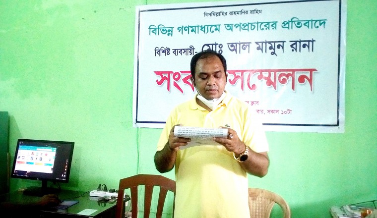 আবুল কাশেম, শাহজাদপুর (সিরাজগঞ্জ): শাহজাদপুর পৌর এলাকার ইসলামপুর (রামবাড়ী) মহল্লার বিশিষ্ট পরিবহন ব্যবসায়ী মোঃ আল মামুন রানা একাধিক গণমাধ্যমে তার বিরুদ্ধে মিথ্যা, ভিত্তিহীন ও বিভ্রান্তিকর সংবাদ প্রচার করানোর প্রতিবাদে সংবাদ সম্মেলন করেছেন। আজ শনিবার (৫ সেপ্টেম্বর) সকাল ১০টায় শাহজাদপুর প্রেস ক্লাবে আয়োজিত সংবাদ সম্মেলনে লিখিত বক্তব্যে ব্যবসায়ী আল মামুন রানা জানান, পৌর এলাকার খঞ্জনদিয়ার মহল্লার একটি সম্পত্তির মালিকানা নিয়ে তার মামা শেখ মোঃ শাহাজাদা গং এবং খালাতো ভাই এনামুল হক গংদের মধ্যে বিবাদ চলে আসছে। বিষয়টি নিয়ে উভয় পক্ষই পূর্বেই আদালতে মামলা দায়ের করেছেন, যা বর্তমানে বিচারাধীন রয়েছে। মামলা চলাবস্থায় আমার খালাতো ভাই এনামুল হক গং আমার শরণাপন্ন হলে আমি উভয় পক্ষকে ডেকে নিয়ে বিষয়টি মিমাংসার চেষ্টা করি। সে চেষ্টা ব্যর্থ হলে এনামুল হক গং আমার শ্বশুর স্থানীয় এমপি আলহাজ্ব হাসিবুর রহমান স্বপনের ঢাকার বাসায় যান। এমপি মহোদয় বিষয়টি অবগত হয়ে আদালতের আদেশ মোতাবেক প্রয়োজনীয় পদক্ষেপ নেয়ার জন্য শাহজাদপুর থানাকে নির্দেশ দেন। অপরদিকে, উভয় পক্ষই আমার নিকট আত্মীয় হওয়ায় এবং উভয় পক্ষের দায়ের করা মামলা আদালতে বিচারাধীন রয়েছে এই বিবেচনায় আইনের প্রতি শ্রদ্ধাশীল হয়ে আমি নিজেকেও নিরপেক্ষ রাখি। তাছাড়াও দায়ের করা মামলায় আমি কোন পক্ষও নই। কিন্তু এনামুল গং আমাকে মিথ্যা দোষারোপ করলেও আমি উভয় পক্ষকে আদালতের মাধ্যমে বিষয়টি মিমাংসা করে নেয়ার পরামর্শ দিয়েছি। লিখিত বক্তব্যে আল মামুন রানা আরো জানান, স্থানীয় এমপি‘র জামাতার পরিচয় দিয়ে বা প্রভাব খাটিয়ে আমি কখনও কারো পক্ষে কোন তদবির করি নাই। অথচ এনামুল হক গং ষড়যন্ত্রমূলক ও উদ্দেশ্য প্রনোদিতভাবে আমাকে সন্ত্রাসী ও চাঁদাবাজ উল্লেখ করে একাধিক গণমাধ্যমে নানা বিভ্রান্তিকর, মিথ্যা ও বানোয়াট তথ্য দিয়ে সংবাদ প্রচার করিয়ে আমাকে সামাজিকভাবে হেয় প্রতিপন্ন করছে ছাড়াও আমার ব্যবসায়ীক সুনাম নষ্ট করার অপচেষ্টায় লিপ্ত রয়েছে। আমি অদ্যকার সংবাদ সম্মেলনের মাধ্যমে এনামুল হক গংদের এরূপ হীনচক্রান্তের তীব্র প্রতিবাদ জানাচ্ছি এবং উপস্থিত সাংবাদিকদের প্রকৃত ঘটনা প্রকাশ ও প্রচার করার জন্য বিনীত অনুরোধ জানাচ্ছি। এ ব্যাপারে এনামুল হকের সাথে যোগাযোগ করা হলে তিনি জানান, আদালতের নিষেধাজ্ঞা থাকা সত্বেও আল মামুন রানা তার মামা শেখ মোঃ শাহাজাদা গংদের পক্ষে কাজ করছে। অন্যদিকে শেখ মোঃ শাহাজাদা জানান, নালিশী জমি আমার পৈতৃক সম্পত্তি। এ নিয়ে আদালতে মামলা বিচারাধীন রয়েছে। এ ব্যাপারে আমার ভাগ্নে আল মামুন রানা কোন পক্ষপাতিত্ব করে নাই। সংবাদ সম্মেলনে শাহজাদপুরে কর্মরত বিভিন্ন প্রিন