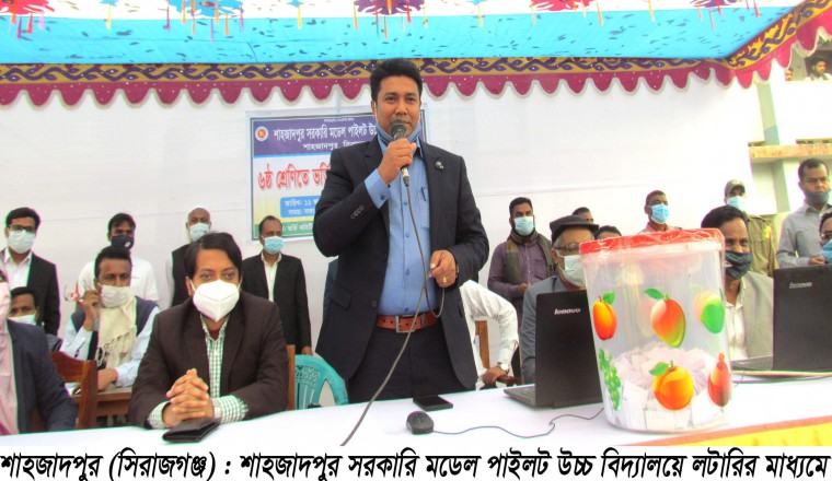 শাহজাদপুর সরকারি মডেল পাইলট উচ্চ বিদ্যালয়ে লটারির মাধ্যমে ৬ষ্ঠ শ্রেণীতে ভর্তি বাছাই সম্পন্ন হয়েছে। সোমবার সকালে বিদ্যালয় চত্বরে এ লটারি অনুষ্টিত হয়। এতে প্রধান অতিথি হিসেবে উপস্থিত থেকে বক্তব্য রাখেন, ভর্তি কমিটির সভাপতি ও উপজেলা নির্বাহী অফিসার শাহ্ মোঃ শামসুজ্জোহা। অনুষ্ঠানে স্বাগত বক্তব্য রাখেন, প্রধান শিক্ষক এস.এম সাইফুল ইসলাম। বিশেষ অতিথি হিসেবে বক্তব্য রাখেন- উপজেলা স্বাস্থ্য ও প.প. কর্মকর্তা ডাক্তার আমিনুল ইসলাম খান, উপজেলা পরিষদের ভাইস চেয়ারম্যান লিয়াকত আলী, মাধ্যমিক শিক্ষা অফিসার এস.এম শাহাদৎ হোসেন, সহকারি মাধ্যমিক শিক্ষা অফিসার শফিউল ইসলাম, সহকারি প্রধান শিক্ষক শামীমা নাহার প্রমুখ। লাটারি বাছাইকালে উপজেলা নির্বাহী অফিসার শাহ্ মোঃ শামসুজ্জোহা বলেন, সবার উপস্থিতিতে লাটারির মাধ্যমে স্বচ্ছভাবে বাছাই করেই ছাত্র-ছাত্রী ভর্তি কার্যক্রম শেষ করা হলো। যাদের ভাগ্যে ভর্তির সুযোগ এসেছে তাদেরকে জানাই অভিনন্দন এবং যারা সুযোগ পায় নি, তাদেরকেও ধন্যবাদ জানিয়ে অন্যান্য প্রতিষ্ঠানে ভর্তি হয়ে ভালোভাবে লেখাপড়া করার জন্য আহবান করছি। উল্লেখ্য, মোট ৭ শ’ ৪৯ জন ছাত্র-ছাত্রী ভর্তির আবেদন করেন, তার মধ্যে লটারির মাধ্যমে ১ শ’ ১০ জন এবং ১০ জনকে মুক্তিযোদ্ধা, প্রতিবন্দ্বী, সরকারি কর্মচারী কোটায় ভর্তি করা হয়েছে।