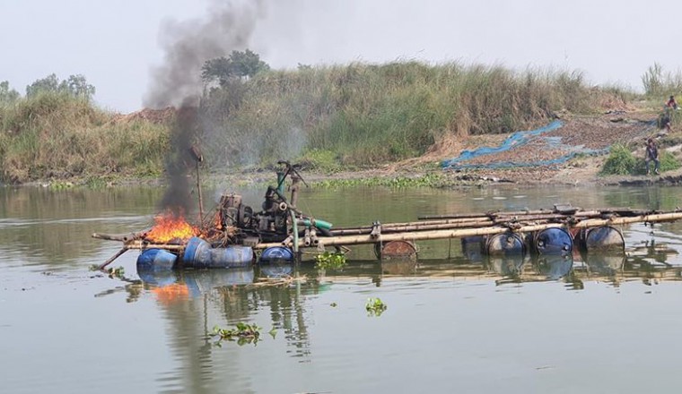 শামছুর রহমান শিশির : আজ শুক্রবার সকালে শাহজাদপুর উপজেলা নির্বাহী অফিসার ও নির্বাহী ম্যাজিস্ট্রেট শাহ মোঃ শামসুজ্জোহা পরিচালিত ভ্রাম্যমান আদালত শাহজাদপুর উপজেলার ৩ স্থানে অভিযান চালিয়ে অবৈধভাবে বালু উত্তোলনের ৭ ড্রেজার মেশিন পুড়িয়ে দেয়। উপজেলার পোরজনা ইউনিয়নের হলদার পাড়া পুকুর ও হুরাসাগর নদী থেকে অবৈধভাবে বালু উত্তোলন করা হচ্ছে মর্মে প্রাপ্ত অভিযোগের প্রেক্ষিতে ওই ৩ স্থানে ভ্রাম্যমান আদালত এ অভিযান চালায়। এ সময় অবৈধভাবে বালু উত্তোলনকারী চক্রের সদস্যরা পালিয়ে যায়। শাহজাদপুর উপজেলা নির্বাহী অফিসার ও ভ্রাম্যমান আদালতের নির্বাহী ম্যাজিস্ট্রেট শাহ মোঃ শামসুজ্জোহা জানান, ‘একটি প্রতাপশালী চক্র দীর্ঘদিন ধরে উপজেলার বিভিন্ন এলাকায় ড্রেজার দিয়ে অবৈধভাবে বালু উত্তোলন করে বিক্রি করে আসছে। প্রতাপশালী অবৈধভাবে বালু উত্তোলনকারী ওই চক্রের দৌরাত্ব বন্ধ করতেই এ অভিযান চালানো হয়েছে। যেখানেই অবৈধভাবে বালু উত্তোলনের খবর পাওয়া যাবে, সেখানেই অভিযান চালানো হবে। এজন্য এলাকাবাসীর সহযোগীতা কামনা করেন ইউএনও।’ এদিকে, দীর্ঘদিন ধরে উপজেলার সোনাতনী, কৈজুরী, গালা ও পোরজনা ইউনিয়নের যমুনা, হুরাসাগর নদীসহ বিভিন্ন স্থানে স্থানীয় প্রভাবশালী মহল ড্রেজার দিয়ে অবৈধভাবে বালু উত্তোলন করে আসছে। যমুনা নদী তীরবর্তী ভাঙ্গণ কবলিত এলাকাও বাদ পড়ছে না ওই চক্রের হাত থেকে। উপজেলার যমুনা তীরবর্তী ভাটপাড়ার কয়েকজন মহল্লাবাসী অভিযোগে জানান,‘যমুনা নদী তীর সংরক্ষণ বাঁধের ভাটপাড়া ও জগতলার যে স্থান যমুনার ভাঙ্গণে ব্যাপক ক্ষতিগ্রস্থ হয়েছে সেই স্থান থেকেও অবৈধ ও অপরিকল্পিতভাবে বালু উত্তোলন করায় ভাঙ্গণ আতংকে ভূগছে এলাকাবাসী। যমুনা ও হুরাসাগর নদীর বিভিন্ন পয়েন্ট থেকে অবৈধভাবে বালু উত্তোলন বন্ধে প্রশাসনের আশু সুদৃষ্টি কামনা করেছে এলাকাবাসী। অপরদিকে, অবৈধভাবে বালু উত্তোলনের ৭ ড্রেজার পুড়িয়ে দেয়ায় শাহজাদপুর উপজেলা নির্বাহী অফিসার শাহ মোঃ শামসুজ্জোহাকে সাধুবাদ জানিয়ে যমুনার ভাঙ্গণ কবলিত ভাটপাড়া ও জগতলা এলাকায় এখনও চলমান অবৈধভাবে ড্রেজার দিয়ে বালু উত্তোলন বন্ধের জোর দাবী জানিয়েছে এলাকাবাসী ।