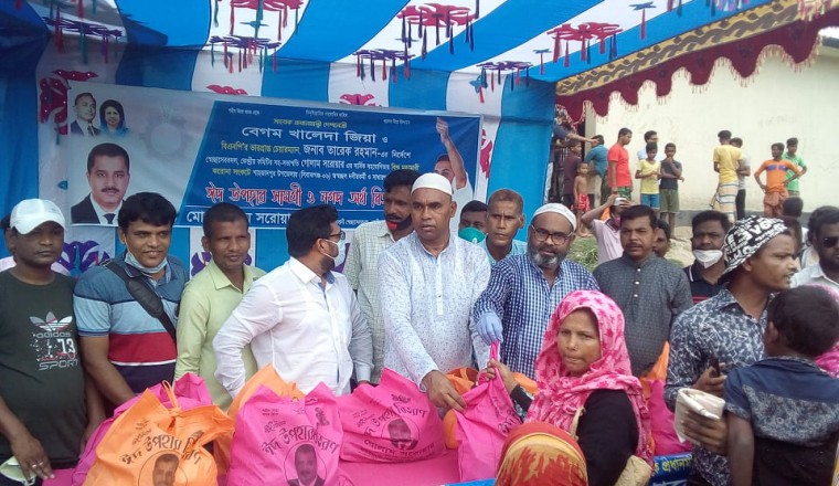 দেশনেত্রী বেগম খালেদা জিয়া ও বিএনপি'র ভারপ্রাপ্ত চেয়ারম্যান তারেক রহমানের নির্দেশনায় আজ (মঙ্গলবার) শাহজাদপুর উপজেলার যমুনা অধ্যুষিত দুর্গম পল্লী অঞ্চল গালা ইউনিয়নের বর্ণিয়া সরকারি প্রাথমিক বিদ্যালয় মাঠ প্রাঙ্গণে কেন্দ্রীয় স্বেচ্ছাসেবক দলের সহ-সভাপতি গোলাম সারওয়ারের পক্ষ থেকে করোনা ভাইরাসের প্রভাবে কর্মহীন এলাকার ৫'শ অসহায় পরিবারের মাঝে ঈদ উপহার বিতরণ করা হয়। বিতরণকৃত ঈদ উপহারের মধ্যে ছিলো ৫ কেজি চাল, ১ কেজি আলু, ১ কেজি চিনি, আধা কেজি ডাল, ১ প্যাকেট সেমাই, শাড়ি, লুঙ্গি ও নগদ অর্থ। এ ঈদ উপহার বিতরণের সময় অন্যান্যের মধ্যে সিরাজগঞ্জ জেলা বিএনপি'র যুগ্ম-সাধারণ সম্পাদক আলহাজ্ব প্রভাষক আবু শামীম, জেলা স্বেচ্ছাসেবক দলের সহ-সভাপতি আব্দুল কুদ্দুস, উপজেলা বিএনপি নেতা শহিদুল ইসলাম নান্নু, উপজেলা যুবদলের সাবেক সাধারণ সম্পাদক মিজানুর রহমান মিন্টু, স্থানীয় যুবদল নেতা সাঈদুল মন্ডল, মোস্তফা, স্থানীয় ছাত্রদল নেতা মিন্টুসহ দলীয় নেতৃবৃন্দ অংশ নেন। করোনার ক্রান্তিকালে প্রান্তিক পর্যায়ের অসহায় কর্মহীন মানুষেরা ঈদ উপহার পেয়ে আবেগাপ্লুত হয়ে পড়েন এবং কেন্দ্রীয় স্বেচ্ছাসেবক দলের সহ-সভাপতি গোলাম সারওয়ারের প্রতি গভীর কৃতজ্ঞতা জ্ঞাপন করেন।