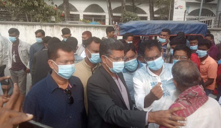 জাহিদ হাসান, শাহজাদপুর (সিরাজগঞ্জ) : সিরাজগঞ্জের শাহজাদপুর পৌরসভার মেয়র ও জেলা আওয়ামী লীগের সাংগঠনিক সম্পাদক হালিমুল হক মিরুকে সাথে নিয়ে আসন্ন শাহজাদপুর পৌরসভা নির্বাচনে আওয়ামী লীগ মনোনীত প্রার্থী মনির আক্তার খান তরু লোদী পৌর এলাকার বিভিন্ন সড়কে পথচারীদের মাঝে মাস্ক বিতরণ করেন।  আজ সোমবার সকালে শাহজাদপুর পৌরসভার সামনের সড়ক থেকে মাষ্ক বিতরণের এ কার্যক্রম শুরু করেন। এ সময় অন্যান্যের মধ্যে উপস্থিত ছিলেন, উপজেলা আওয়ামী লীগ নেতা হাবিবুল হক সাব্বির, যুবলীগ নেতা সাজ্জাদ হোসেন, রওশন আলম, এস,কে, লিটন , পৌর কাউন্সিলর লিয়াকত হোসেন, আব্দুর রাজ্জাক, উপজেলা ক্রীড়া সংস্থার সাধারন সম্পাদক সাংবাদিক আসলাম আলী প্রমূখ। এ সময় হালিমুল হক মিরু আগামী ২৮ ডিসেম্বর শাহজাদপুর পৌর নির্বাচনে নৌকা প্রতীকে তরুলোদীকে মেয়র পদে নির্বাচিত করার আহ্বান জানান।