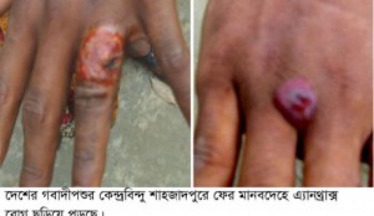 জানা গেছে, গত ১৪ ও ১৫ আগষ্ট পাথালিয়া পাড়া গ্রামের নুরু ব্যাপারী ও অপর আরেকজনের দুটি অসুস্থ্য ছাগল জবাই করে । এ ছাড়া গত ৪ আগষ্ট বাঘাবাড়ী দক্ষিন পাড়া গ্রামে একটি অসুস্থ গরু জবাই করে। এই গরু ও ছাগলের মাংস নিজেদের মধ্যে ভাগ বাটোয়ারা করে বিক্রি করে। এই মাংস নাড়াচাড়া করায় আক্রান্তদের শরীরের বিভিন্ন স্থানে ক্ষত দেখা দেয়। গতকাল বুধবার শাহজাদপুর উপজেলা হেলথ কমপ্লেক্সে এরা চিকিৎসা নিতে গেলে চিকিৎসকরা তাদের শরীরে এ্যানথ্রাক্স দেখা দিয়েছে বলে সনাক্ত করে । শাহজাদপুর উপজেলা স্বাস্থ্য কর্মকর্তা ডাঃ বেলায়েত হোসেন এর সত্যতা স্বীকার করেছেন। কৈজুরি ইউনিয়নের হেলথ ইন্সপেক্টর আনছার আলী জানান, বাবুল ও রনির দেহে এ্যানথ্রাক্স সনাক্ত করেছেন। এ ব্যাপারে উপজেলা প্রাণি সম্পদ কর্মকর্তা ডাঃ আব্দুল হাই এর সাথে যোগাযোগ করা হলে তিনি জানান, এ ধরনের খবর তাদের জানা নেই। এদিকে গতকাল বুধবার বিকেলে জেলা সিভিল সার্জন অফিসের একটি চিকিৎসক দল এবং মহাখালীর আইবিসিআরএর একটি বিশেষজ্ঞ চিকিৎসক দল ঘটনাস্থল পরিদর্শন করেন এবং আক্রান্ত রোগীদের চিকিৎসা প্রদান করেন। এদিকে শাহজাদপুরে আবারও এ্যানথ্রাক্স ছড়িয়ে পড়ায় গো-খামারীরা চরম আতঙ্কের মধ্যে পড়েছে। বিশেষ করে এলাকার ৩২ হাজার ষাড় মোটাতাজা করার কাজে নিয়োজিত কৃষকরা বেশী আতঙ্কগ্রস্ত হয়ে পড়েছে। এরা এর দ্রুত প্রতিকার ব্যবস্থা গ্রহনের জোর দাবী জানিয়েছেন।
