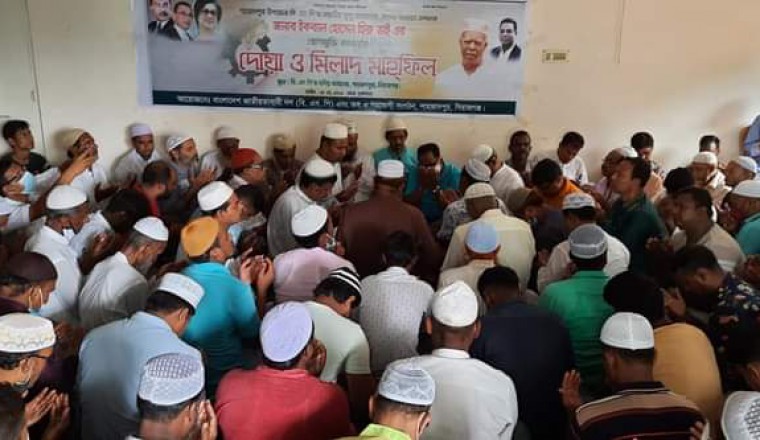 আজ শুক্রবার (২৮ মে) সকাল ১০টায় শাহজাদপুর উপজেলা বিএনপি'র যুগ্ম-আহবায়ক ও শাহজাদপুর উপজেলা বিএনপি'র সাবেক সাধারণ সম্পাদক মোঃ ইকবাল হোসেন হিরু'র রোগমুক্তি কামনায় শাহজাদপুর উপজেলা (বিএনপি) এবং এর অঙ্গ ও সহযোগী সংগঠনের আয়োজনে উপজেলার পৌরসদরের খন্জনদিয়া মহল্লার প্রফেসর ড. এম এ মুহিতের নিজ বাসভবনে মিলাদ ও দোয়া মাহফিল অনুষ্ঠিত হয়েছে। উক্ত দোয়া ও মিলাদ মাহফিলে উপস্থিত ছিলেন উপজেলা বিএনপি'র যুগ্ম-আহবায়ক মোঃ আরিফুজ্জামান আরিফ, পৌর বিএনপি'র সদস্য সচিব আব্দুল আজিজ, যুগ্ম-আহবায়ক এমদাদুল হক নওশাদ, হাজী আয়ুব আলী, উপজেলা বিএনপি'র সাবেক সাংগঠনিক সম্পাদক মোঃ রেজাউল ইসলাম রাজা, বিএনপি নেতা এ্যাড. রায়হান উদ্দিন, খন্দকার মাসুদ রানা, আবুবক্কার রন্জু,হাজী আমিনুল ইসলাম দুলাল, সাকিক চৌধুরী, শহিদুল ইসলাম নান্নু, উপেজলা যুবদলের আহবায়ক মিজানুর রহমান মিন্টু, যুগ্ম-আহবায়ক আব্দুল্লা-আল-মাহমুদ, সদস্য সচিব আলাল হোসেন, যুগ্ম-আহবায়ক মোঃ জাহিদুল ইসলাম, মোঃ আরিফ প্রাং, মোঃ মাসুম রানা, পৌর যুবদলের আহবায়ক মাহমুদুল হাসান সজল, সিনিয়র যুগ্ম-আহবায়ক মোঃ বখতিয়ার ভূঁইয়া, যু্গ্ম-আহবায়ক টিংকু সরকার, মোঃ রহমত আলী, উপজেলা ছাত্রদলের আহবায়ক আব্দুল্লা-আল-মামুন জুয়েল, যুগ্ম-আহবায়ক হোসেন আলী হাসান প্রমূখ। এছাড়াও উক্ত মিলাদ মাহফিলে শাহজাদপু উপেজলা, পৌর এবং ইউনিয়ন বিএনপি'র অঙ্গ ও  সংগঠনের সকল পর্যায়ের নেতাকর্মীরা এসময় উপস্থিত ছিলেন। এসময় উপস্থিত সকলে ইকবাল হোসেন হিরু'র দ্রুত রোগমুক্তি ও সুস্থ্যতা কামনা করেন।