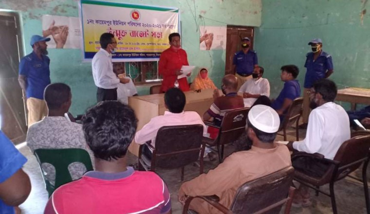 সিরাজগঞ্জ জেলার শাহজাদপুর উপজেলার ১ নং কায়েমপুর ইউনিয়ন পরিষদের ২০২০-২১ ইং অর্থ বছরের উন্মুক্ত খসড়া বাজেট ঘোষণা করা হয়েছে। রোববার (৩১ মে) উপজেলার কায়েমপুর ইউনিয়ন পরিষদ হলরুমে অনুষ্ঠিত বার্ষিক বাজেট ঘোষণা অনুষ্টানে কায়েমপুর ইউনিয়ন পরিষদ চেয়ারম্যান মোঃ হাসেবুল হক হাসানের সভাপতিত্বে ও নির্দেশক্রমে কায়েমপুর ইউপি'র ২০২০-২০২১ অর্থ বছরের উন্মুক্ত খসড়া বাজেট পেশ করেন ইউনিয়ন পরিষদের সচিব মোঃ রেজাউল করিম। ঘোষিত উক্ত বাজেটে ৩ কোটি ৮৬ লাখ ৫ হাজার ৯'শ ৪০ টাকা সাম্ভাব্য আয়, ৩ কোটি ৮৫ লাখ ৫০ হাজার ১’শ ৯০ টাকা সাম্ভাব্য ব্যায় এবং ৫৭ হাজার ৭'শ ৫০ টাকা উদ্বৃত্ত দেখানো হয়েছে। উক্ত বাজেট ঘোষণা অনুষ্ঠানে কায়েমপুর ইউনিয়ন পরিষদের চেয়ারম্যান, সচিব ছাড়াও সকল ইউপি সদস্য ও গণ্যমান্য ব্যাক্তিবর্গ উপস্থিত ছিলেন।