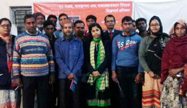 নিজস্ব প্রতিনিধিঃ গতকাল সোমবার শাহজাদপুরে কেয়ার বাংলাদেশের এসডিভিসি প্রকল্পের আওতায় দুগ্ধ সংগ্রহ, ব্যবস্থাপনা এবং বাজারজাত করণ বিষয়ক একদিন ব্যাপি রিফ্রেসার্স প্রশিক্ষণ কর্মশালা অনুষ্ঠিত হয়। উপজেলার বিআরডিবি হল রুমে অনুষ্ঠিত এ প্রশিক্ষণ কর্মশালায় শাহজাদপুর ও সলঙ্গা থানার দুগ্ধ কালেকশন পয়েন্টের ১৫ জন ম্যানেজার এ প্রশিক্ষণে অংশ নিয়ে এ বিষয়ে দক্ষতা অর্যন করেন। এ প্রশিক্ষণ উদ্ভোদন করেন, প্রকল্প ব্যবস্থাপক এএসএম শাহীন। প্রশিক্ষণ পরিচালনা করেন, কলসাটেন্ট মোঃ নুরুন নবী, সার্বিক তত্বাবধায়নে ছিলেন জেন্ডার এন্ড ট্রেনিং এর প্রকল্প ব্যবস্থাপক শরীফা পারভীন, সহযোগীতায় ছিলেন প্রজেক্ট অফিসার দূর্গা রানী সাহা, ইউএলও ডাঃ আব্দুল হাই, বিআরডিবি চেয়ারম্যান কোরবান আলী, ইনটার্ণ নুসরাত জাহান প্রমুখ। মৌলিক এ প্রশিক্ষণের মাধ্যমে শিক্ষার্থীরা শিখন, অভিজ্ঞতা, প্রতিবন্ধকতা এবং ভবিষ্যত উত্তোরণ ও উন্নয়নের উপায় সমূহ নির্ধারণ বিষয়ক প্রশিক্ষণ লাভ করেন।