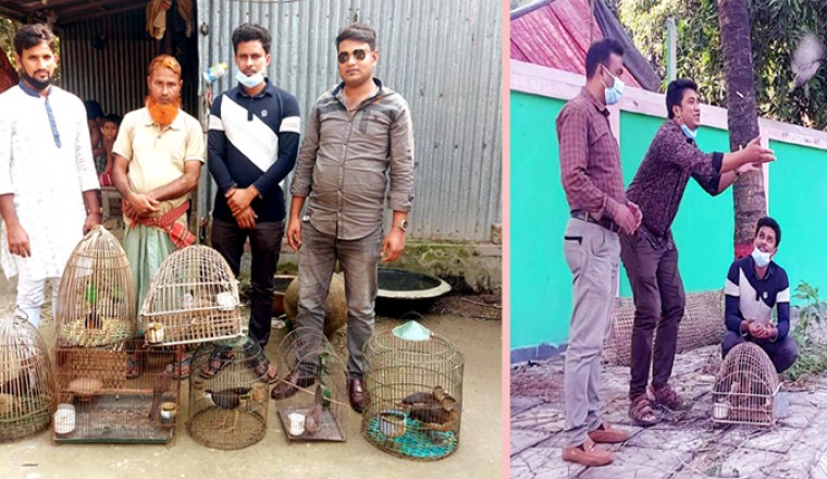 সিরাজগঞ্জ জেলার শাহজাদপুর উপজেলার পোরজনা ইউনিয়নের নন্দলালপুর গ্রামে মৃত আকাশের ছেলে ছোরহাব দীর্ঘদিন ধরে খাঁচায় বন্দী ৮ টি পাখি দিয়ে অন্য পাখি শিকার করে বিক্রি করতো। পরিবেশবাদী সংগঠন দি বার্ড সেফটি হাউজের চেয়ারম্যান মামুন বিশ্বাস, স্থানীয় ইউ পি সদস্য আবুল কাশেম ও আলাউদ্দিন আজ সকাল ১১ টার দিকে অভিযান চালিয়ে শাহজাদপুর উপজেলা নির্বাহী অফিসারের সহযোগিতায় খাঁচায় বন্দি তিন প্রজাতির ৮টি পাখি উদ্ধার করে।