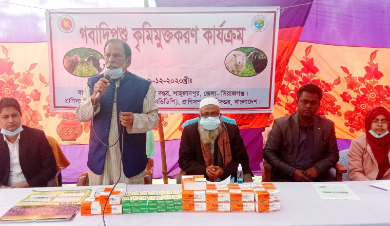 সিরাজগঞ্জের শাহজাদপুর উপজেলা প্রাণিসম্পদ দপ্তরের বাস্তবায়নে, প্রাণিসম্পদ ও ডেইরী উন্নয়ন প্রকল্প (এলডিডিপি), প্রাণিসম্পদ দপ্তর বাংলাদেশ এর সহয়তায় মঙ্গলবার হাবিবুল্লাহনগর ইউনিয়নের ডায়া ঈদগাহ ময়দানে বিনামুল্যে গবাদীপশুর কৃমিমুক্তকরণ কার্যক্রম অনুষ্ঠিত হয়েছে। এ অনুষ্ঠানে প্রধান অতিথি হিসেবে উপস্থিত ছিলেন শাহজাদপুর উপজেলা পরিষদের চেয়ারম্যান প্রফেসর আজাদ রহমান। সিরাজগঞ্জ জেলা প্রাণিসম্পদ কর্মকর্তা আলহাজ ডা. আখতারুজ্জামান ভুঁইয়ার সভাপতিত্বে স্বাগত বক্তব্য রাখেন শাহজাদপুর উপজেলা প্রাণিসম্পদ কর্মকর্তা ডা. মিজানুর রহমান। আরো বক্তব্য রাখেন উপজেলা প্রাণিসম্পদ সম্প্রসারণ কর্মকর্তা (এলডিডিপি) ডা. সোনালী খাতুন, উপসহকারী প্রাণিসম্পদ কর্মকর্তা আনিসুর রহমান প্রমুখ।