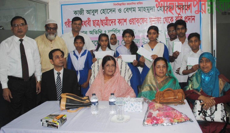 ফারুক হাসান কাহার, শাহজাদপুর (সিরাজগঞ্জ) প্রতিনিধি : সিরাজগঞ্জের শাহজাদপুরে আজ মঙ্গলবার দুপুরে ক্যাশ ওয়াকফ মুনাফা থেকে গরিব ও মেধাবী শিক্ষার্থীদের মাঝে বৃত্তি প্রদান করা হয়েছে। শাহজাদপুরের মনিরামপুরের সোস্যাল ইসলামী ব্যাংক কার্যালয়ে এ বৃত্তি প্রদান অনুষ্ঠানে প্রধান অতিথি ছিলেন সোস্যাল ইসলামী ব্যাংকের পরিচালক নার্গিস মান্নান। কাজী আবুল হোসেন ও বেগম মাহমুদা হোসেন স্মরণে এ বৃত্তি প্রদান অনুষ্ঠনে বক্তব্য রাখেন,আলহাজ¦ সাব্বির আহমেদ খান,শাহবাজ খান সানি, সোস্যাল ইসলামী ব্যাংক,সিরাজগঞ্জ কার্যালয়ের ম্যানেজার হাসানুল হাসান, শাহজাদপুর কার্যালয়ের ম্যানেজার জাহাঙ্গীর কবির,প্রধান শিক্ষক কামরুন্নাহার লাকি,কাজী ফরিদা ইয়াসমিন উজ্জল ও হাফেজ মোঃ নূরুল আলম।