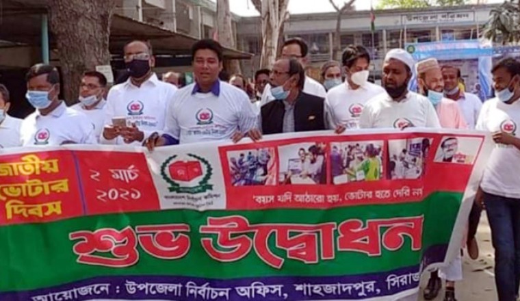 বয়স যদি আঠারো হয়, ভোটার হতে দেরি নয়, এই প্রতিপাদ্যকে সামনে রেখে সারাদেশের ন্যায় মঙ্গলবার সকালে সিরাজগঞ্জের শাহজাদপুরে জাতীয় ভোটার দিবস ২০২১ ও স্মারকার্ড বিতরণের শুভ উদ্বোধন করা হয়।
