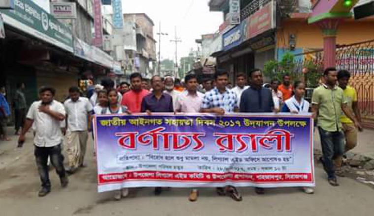 এম এ হান্নান : বিরোধ হলে মামলা নয়, লিগ্যাল এইড অফিসে আপোষ হয়- এই প্রতিপাদ্য বিষয়কে সামনে রেখে আজ লিগ্যাল এইড কমিটি ও শাহজাদপুর উপজেলা প্রশাসনের উদ্যোগে আইন সহায়তা দিবস ২০১৭ পালিত হয়েছে ৷ এ উপলক্ষে সকাল ১০ টায় উপজেলা কোর্ট ভবন চত্বর থেকে শুরু করে এক বিশাল র্যালী বের হয়ে শহরের বিভিন্ন সড়ক প্রদক্ষিণ শেষে উপজেলা চত্বরে এসে শেষ হয়। পরে সেখানে এইড কমিটি শাহজাদপুর উপজেলা কমিটির সভাপতি, সিনিয়র জুডিশিয়াল ম্যাজিষ্ট্রেট হাসিবুল হক বক্তব্য রাখেন ৷ তিনি উল্লেখ করেন, বাংলাদেশে প্রতিটি জেলা উপজেলাতে লিগ্যাল এইড কমিটি আছে ৷ অসহায় গরীব মানুষ যারা অর্থাভাবে মামলা পরিচালনা করতে পারছে না তাদের পাশে থেকে আইনগত সহায়তা প্রদান করছে এ কমিটি। এ সময় অন্যান্যের মধ্যে উপস্থিত ছিলেন শাহজাদপুর চৌকি আদালতের সিনিয়র সহকারী জজ মোঃ তোফাজ্জল হোসেন, উপজেলা নির্বাহী অফিসার আলীমুন রাজীব,সিরাজগঞ্জ নারী ও শিশু নির্যাতন দমন ট্রাইব্যুনালের স্পেশাল পাবলিক প্রসিকিউটর, মিল্কভিটার ভাইস চেয়ারম্যান এড শেখ আব্দুল হামিদ লাভলু, পৌরমেয়র মোঃ নাসির উদ্দিন(ভারপ্রাপ্ত), লিগ্যাল এইড প্যানেল আইনজীবী আব্দুল আজিজ জেলহক, এড,শাহজালাল, এ্যডভোকেট আনোয়ার হোসেন, আঃ আজিজ আনছার, আব্দুছ ছাত্তার মোল্লা ওয়াজেদ আলী, শাহজাদপুর মডেল পাইলট উচ্চ বিদ্যালয়ের প্রধান শিক্ষক এস এম সাইফুল ইসলাম, যুবলীগ নেতা রাজীব শেখ প্রমুখ ৷