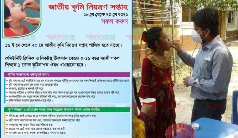 সারাদেশের ন্যায় সিরাজগঞ্জের শাহজাদপুরেও শুরু হয়েছে জাতীয় কৃমি নিয়ন্ত্রণ সপ্তাহ। আজ রোববার (১৬ মে) সকাল ১১ টায় উপজেলার রুপপুর পুরাতন পাড়া আনোয়ার হাজির বাড়ীতে কৃমি সপ্তাহের উদ্বোধন ঘোষণা করেন উপজেলা স্বাস্থ্য কর্মকর্তা ডাঃ আমিনুল ইসলাম খান। উপজেলা স্বাস্থ্য কর্মকর্তা ডাঃ আমিনুল ইসলাম খান শাহজাদপুর সংবাদ ডটকমকে জানান, এবছর কৃমি নিয়ন্ত্রণ সপ্তাহ ১৬ মে থেকে শুরু হয়ে ২০ মে পর্যন্ত চলমান থাকবে। এছাড়া উপজেলার ১৩টি ইউনিয়নের মোট ৫৩টি কমিউনিটি ক্লিনিক ও  প্রতিদিন পৌরসভার ২টি করে ওয়ার্ডে ৫ থেকে ১৬ বছর বয়সী ১লক্ষ ৪৪ হাজার ৪৪০ জন শিশুকে ১ ডোজ কৃমিনাশক ঔষধ খাওয়ানোর লক্ষ‍্যমাত্রা নির্ধারণ করা হয়েছে বলে শাহজাদপুর সংবাদ ডটকমকে জানায় উপজেলা স্বাস্থ্য কর্মকর্তা ডাঃ আমিনুল ইসলাম খান ।