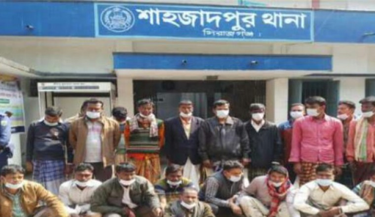 শাহজাদপুরে ডিবি'র অভিযানে ২২ জুয়াড়ি আটক হয়েছে। জানা গেছে, গতকাল মঙ্গলবার বিকালে গোপন সংবাদের ভিত্তিতে সিরাজগঞ্জ জেলা গোয়েন্দা শাখা (ডিবি)'র এসআই আরিফুল ইসলাম ও এসআই শহীদ আখতার সঙ্গীয় ফোর্সসহ সিরাজগঞ্জের শাহাজদপুর উপজেলার পোরজনা ইউনিয়নের বড় মহারাজপুর গ্রামে অভিযান চালিয়ে জুয়া খেলারত অবস্থায় মোঃ মকবুল (৩৫), মোঃ রেজাউল (৩০) ও মোঃ খোকন ফকির (৩৫) সহ ২২ জন জুয়াড়িকে আটক করে। এ সময় তাদের কাছে থেকে নগদ ১লাখ ১১ হাজার ১'শ ২০ টাকা জব্দ করা হয়। পরে ডিবি'র এস আই আরিফুল ইসলাম বাদী হয়ে ধৃত ২২ জনকে আসামী করে শাহজাদপুর থানায় একটি মামলা দায়ের করেন। বুধবার সকালে তাদের শাহজাদপুর উপজেলা আদালতের মাধ্যমে জেলহাজতে প্রেরণ করা হয়েছে । ডিবি'র এ অভিযানকে সাধুবাদ জানিয়েছে এলাকাবাসী।