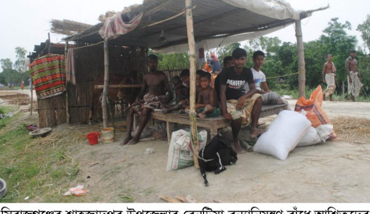 সিরাজগঞ্জের শাহজাদপুর উপজেলার ১৩টি ইউনিয়নের সব ফসলি জমি ও নিচু সড়ক বন্যার পানিতে ডুবে যাওয়ায় গ্রামাঞ্চলের মানুষের যাতায়াতে নৌকাই এখন একমাত্র ভরসা হয়ে উঠেছে। বন্যার পানিতে ডুবে যাওয়া কৈজুরি,জালালপুর,খুকনি,সোনাতনী ও গালা ইউনিয়নের ২ শতাধিক মানুষ গরু,ছাগল,ভেড়া নিয়ে এনায়েতপুর-ভেড়াকোলা বন্যা নিয়ন্ত্রণ বাঁধে আশ্রয় নিয়ে মানুষ ও গবাদি পশু এক সাথে এক ঝুপড়ির মধ্যে বাস করছে। বন্যার পানিতে ডুবে আছে উপজেলার অন্তত ২০টি গ্রাম। এর মধ্যে গালা ইউনিয়নের, হাতকোড়া, বৃ-হাতকোড়া, মোহনপুর, রতনদিয়া, গোপালপুর, ধলাই গ্রামের সব গুলো বাড়িঘর ও বিনটিয়া, তারটিয়া, কাশিপুর গ্রামের অধিকাংশ, সোনাতনী ইউনিয়নের বাঙ্গালা,আগবাঙ্গালা গ্রামের সব গুলো বাড়িঘর বন্যার পানিতে ডুবে গেছে। বন্যা দূর্গত ও পানিবন্দি এ সব গ্রামের শত শত মানুষের ঘরে বিশুদ্ধ পানি ও খাবারের তীব্র সংকট দেখা দিয়েছে। এ ছাড়া কৈজুরি,জালালপুর, খুকনি, সোনাতনী ও গালা ইউনিয়নের ১০টি গ্রামে যমুনা নদীর ভাঙ্গণ শুরু হওয়ায় ২ শতাধিক মানুষ গৃহহীন হয়ে অন্যত্র আশ্রয় নিয়েছে। এ বিষয়ে বিষয়ে বেনুটিয়া গ্রামের আফজাল হোসেন,মাজেম আলী, মজনু শেখ,জালু মোল্লা,লালু প্রাং,জয়নাল সরদার,তোরাব আলী,নায়েব আলী, শরিফুল ইসলাম, আব্দুস সাত্তার, আসাদুল ইসলাম, তারটিয়া গ্রামের হাসান আলী,আব্দুর রাজ্জাক,শাহাদত হোসেন জানান, গত ১০ দিন হল আমাদেও বাড়িঘর বন্যার পানিতে ডুবে গেছে। সেই থেকে বাঁধে আশ্রয় নিয়ে আছি। এখনও পর্যন্ত কেউ আমাদের কোন খোজ নেয়নি। আমরা এক বেলা,আধ বেলা খেয়ে না খেয়ে দিন কাটাচ্ছি। ছোট ছেলে মেয়ে, গরু, ছাগল নিয়ে এক ঝুপড়িতে বাস করছি। একটু বৃষ্টি এলেই সব ভিজে একাকার হয়ে যায়। গবাদি পশুর খাবার জোগান দিতে পারছি না। আমরা খুবই কষ্টের মধ্যে দিন যাপন করছি। এ বিষয়ে গালা ইউনিয়নের চেয়ারম্যান আব্দুল বাতেন বলেন, এ বিষয়ে উর্ধ্বতন কর্তৃপক্ষকে জানানো হয়েছে। কিন্ত বন্যাদূর্গতদের জন্য এখনও কোন ত্রাণ বরাদ্দ পাওয়া যায়নি। পেলে বন্যা তাদের মাঝে বিতরণ করা হবে। এ বিষয়ে শাহজাদপুর উপজেলা প্রকল্প বাস্তবায়ন কর্মকর্তা আবুল কালাম বলেন,এ বিষটি জেলায় জানানো হয়েছে। কিন্তু এখনও কোন বরাদ্দ পাওয়া যায়নি পেলে বিতরণ করা হবে। সূত্রঃ আজকের জাহান