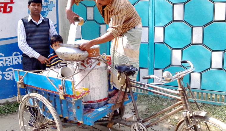 শাহজাদপুর প্রতিনিধিঃ হরতাল অবরোধে ঢাকায় দুধ সরবরাহ বন্ধ থাকায় শাহজাদপুর উপজেলার হাট বাজারে ও পৌর শহরের পাড়ায় পাড়ায় ২০ থেকে ২৫ টাকা লিটার দরে দুধ ফেরি করে বিক্রি করা হচ্ছে। অপরদিকে শাহজাদপুরের বাজারে বোতলজাত পানি ৩০ টাকা লিটার দরে বিক্রি হচ্ছে। পানির চেয়ে দুধের দাম কমে যাওয়ায় কৃষকরা দিশেহারা হয়ে পরেছে। এর পরেও ক্রেতার অভাবে অনেক কৃষকের দুধ নষ্ট হয়ে যাচ্ছে। গতকাল রোববার সকালে কাশিনাথপুরের আব্দুল গফুর, বৃ-আঙ্গারু গ্রামের সুজন ও শামীম,রাউতারা গ্রামের আব্দুল মজিদ কে মণিরামপুর বাজার, চুনিয়াখালিপাড়া, পাঠানপাড়া, সাহাপাড়া, দেওয়ানপাড়া, রায়পাড়া এলাকায় ঘুরে ঘুরে ফেরি করে দুধ বিক্রি করতে দেখা গেছে।স্থানীয় প্রাণী সম্পদ অফিস সূত্রে জানা যায়, শাহজাদপুরে প্রায় ১ লাখ ২০ হাজার উন্নতমানের দুধেল গাভী রয়েছে। এ সব গাভী থেকে প্রতিদিন সকাল-বিকাল দুই বেলা করে প্রায় সাড়ে ৪ লাখ লিটার দুধ উৎপন্ন হয়। এর মধ্যে বাঘাবাড়ী মিল্কভিটা ২ লাখ লিটার এবং আরো ২ লাখ লিটার বিভিন্ন বেসরকারী ২০টি সংস্থা সংগ্রহ করে ঢাকায় সরবরাহ করে থাকে। বাকী দুধ স্থানীয় বাজারে দুধের চাহিদা পূরণ করা হয়। এই বিপুল পরিামাণ দুধ হরতাল অবরোধের কারনে ঢাকায় সরবরাহ করতে না পাড়ায় কৃষকরা স্থানীয় বাজারে ও গ্রাম গঞ্জে পানির চেয়ে কম দামে ফেরি করে বিক্রি করছে। অবিক্রিত দুধ নষ্ট হয়ে গেলে তা নদীতে ফেলে দিতে বাধ্য হচ্ছে। এতে শাহজাদপুরের দুগ্ধ উৎপাদনকারী এক লাখ সমবায়ী খামারী ও ২০ হাজার কৃষক আর্থিক লোকসানের মুখে পরেছে। এতে শাহজাদপুরে দুগ্ধ শিল্পে ব্যাপক ধস নেমে এসেছে। অপরদিকে গো-খাদ্য খৈল ভূষির দাম বস্তা প্রতি ৩০০ থেকে ৪০০ টাকা বৃদ্ধি পাওয়ায় কৃষকরা দিশেহারা হয়ে পরেছে। অনেক গো-খামারী ও কৃষক গবাদী পশুর লালন পালন ও গো-খামার বন্ধ করে দিতে বাধ্য হচ্ছে। এতে শাহজাদপুরে দুগ্ধ উৎপাদনে ধস নেমে এসেছে। এতে শাহাজাদপুরের কৃষকদের অর্থনৈতিক অবস্থা শোচনীয় হয়ে পরেছে। এ অবস্থায় দুধের দাম কমে যাওয়ায় শাহজাদপুরের গ্রামে গঞ্জে শীতের দুধ পিঠা খাওয়ার ধুম পড়ে গেছে। এ সুযোগে বাজারে পাটালি ও খেজুর গুড়ের দাম অস্বাভাবিক ভাবে বৃদ্ধি পেয়েছে। ফলে পিঠা খাওয়া নিয়েও এলাকা বাসী বিপদে পড়েছে।