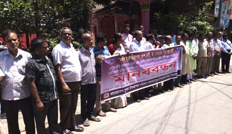 শামছুর রহমান শিশির : ‘ধর্ষণমুক্ত নিরাপদ দেশ চাই, মা-বোনদের নিরাপত্তা চাই’ এ শ্লোগানকে সামনে রেখে ফেনীর মাদরাসা ছাত্রী নুসরাত জাহান রাফি, মুন্সিগঞ্জের শিক্ষার্থী সেতু মন্ডল ও গাজীপুরের শিক্ষার্থী মনিকা গোমেজ এর ধর্ষণ ও হত্যাকারীদের অবিলম্বে গ্রেফতার ও বিচার এবং নারীর প্রতি সহিংসতা বন্ধের দাবিতে আজ সোমবার শাহজাদপুরে মানববন্ধন কর্মসূচি পালন করা হয়। বাংলাদেশ পূজা উদযাপন পরিষদ, কেন্দ্রীয় কমিটির আহবানে দেশব্যাপি মানববন্ধন কর্মসূচির অংশ হিসেবে শাহজাদপুর উপজেলা পূজা উদযাপন পরিষদ এ মানববন্ধনের আয়োজন করে। এদিন সকাল ১১ টা থেকে দুপুর ১২ টা পর্যন্ত পৌর এলাকার প্রাণ কেন্দ্র মনিরামপুর বাজার কালীমন্দির সংলগ্ন প্রধান সড়কে এ মানববন্ধন পালিত হয়। প্রায় ঘন্টাব্যাপি মানববন্ধন চলাকালে ধর্ষণ ও হত্যাকারীদের অবিলম্বে গ্রেফতার ও বিচার এবং সকল সহিংসতা বন্ধের দাবি জানিয়ে বক্তব্য রাখেন, উপজেলা পরিষদের চেয়ারম্যান প্রফেসর আজাদ রহমান, স্থানীয় পূজা উদযাপন পরিষদের সভাপতি বিনয় কুমার পাল, সাধারণ সম্পাদক বিমল কুন্ডু, উপজেলা আইনজীবী সমিতির সভাপতি ও বাসদ নেতা এ্যাডভোকেট আনোয়ার হোসেন, এ্যাডভোকেট কে, এম, মতিয়ার রহমান, বিপ্লব কুমার সরকার, শ্যামল কুমার সাহা, সাংস্কৃতিক কর্মী কাজী শওকত, সাবেক ছাত্রলীগ নেতা ইসলাম শেখ, শংকর ব্যানার্জী, উৎপল কুন্ডু, প্রমুখ। বক্তারা নুসরাত জাহান রাফির হত্যাকারীরা গ্রেফতার হওয়ায় স্বরাষ্ট্রমন্ত্রীসহ মাননীয় প্রধানমন্ত্রী জননেত্রী শেখ হাসিনার প্রতি কৃতজ্ঞতা প্রকাশ করেন। পাশাপাশি সেতু মন্ডল ও মনিকা গোমেজের হত্যাকারীরা গ্রেফতার না হওয়ায় তীব্র ক্ষোভ প্রকাশ করেন। মানববন্ধন কর্মসূচিতে পূজা উদযাপন পরিষদ উপজেলা শাখা, পৌর শাখা ও বিভিন্ন ইউনিয়ন কমিটির নেতৃবৃন্দ, রাজনীতিবিদ, মুক্তিযোদ্ধা, সাংবাদিক, শিক্ষকসহ নানা শ্রেনী পেশার শত শত মানুষ উপস্থিত ছিলেন।