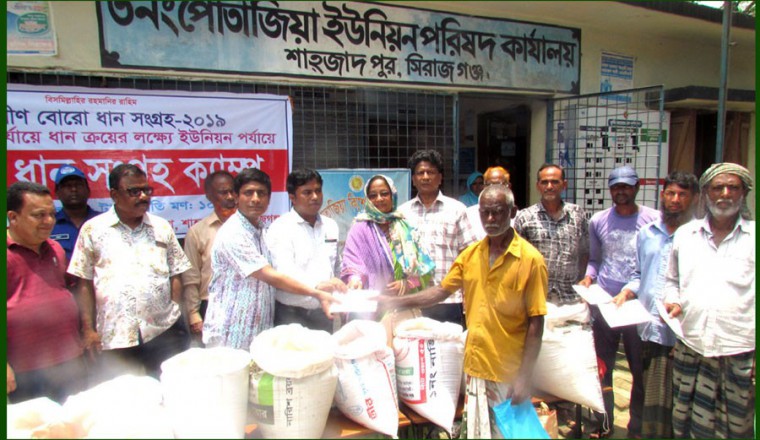 নিজস্ব প্রতিনিধি: শাহজাদপুর উপজেলা নির্বাহী অফিসার নাজমুল হুসেইন খাাঁন বলেছেন, ‘প্রকৃত কৃষকদের কাছ থেকেই সরকারিভাবে ধান সংগ্রহ করা হচ্ছে। যাচাই-বাছাই করে তবেই প্রকৃত কৃষকের কাছ থেকে ধান ক্রয় করা হচ্ছে। সরকারিভাবে ধান সংগ্রহ কাজে কেউ অনিয়ম করলে তার বিরুদ্ধ কঠোর ব্যবস্থা গ্রহণ করা হবে। মধ্যস্বত্বভোগীরা যাতে ফায়দা লুটতে না পারে সে বিষয়ে নিয়মিত মনিটরিং করা হচ্ছে।’ শাাহজাদপুর উপজেলার পোতাজিয়া ইউনিয়ন পরিষদে সরকারিভাবে সরাসরি প্রকৃত কৃষকের কাছ থেকে বোরো ধান সংগ্রহকালে ইউএনও উপরোক্ত কথাগুলো বলেছেন। এ সময় অন্যান্যের মধ্যে শাহজাদপুর উপজেলা পরিষদের মহিলা ভাইস চেয়ারম্যান এলিজা খান, পোতাজিয়া ইউপি চেয়ারম্যান মোহাম্মদ আলী ব্যাপারী, উপজেলা খাদ্য নিয়ন্ত্রক ইয়াসিন আলী, উপজেলা কৃষি সম্প্রসারণ অফিসার আব্দুল্লাহ আল মামুন, গাড়াদহ ইউপি চেয়ারম্যান সাইফুল ইসলাম, স্থানীয় এলএসডি গোডাউনের ইনচার্জ সাইফুল ইসলাম, পোতাজিয়া ইউপি সদস্য ও পোতাজিয়া ইউনিয়ন আওয়ামী লীগের যুগ্ম-সাধারণ সম্পাদক নজরুল ইসলামসহ গণ্যমান্য ব্যক্তিবর্গ উপস্থিত ছিলেন। ধান ক্রয়কালে উপজেলা নির্বাহী অফিসার নাজমুল হুসেইন খাঁন জানান, ‘পোতাজিয়া ইউনিয়নের কৃষকদের কাছ থেকে সরকার নির্ধারিত মূল্যের বিনিময়ে (প্রতি মেট্রিক টন ২৬ হাজার টাকা) মোট ৬২ মেট্রিকটন ধান ক্রয় করা হয়েছে। চলতি বছর উপজেলার বিভিন্ন ইউনিয়নের হাঁট-বাজার থেকে সরাসরি কৃষকদের কাছ থেকে ৭শ’ ৬৪ মেট্রিক টন ধান সংগ্রহ করা হচ্ছে।’