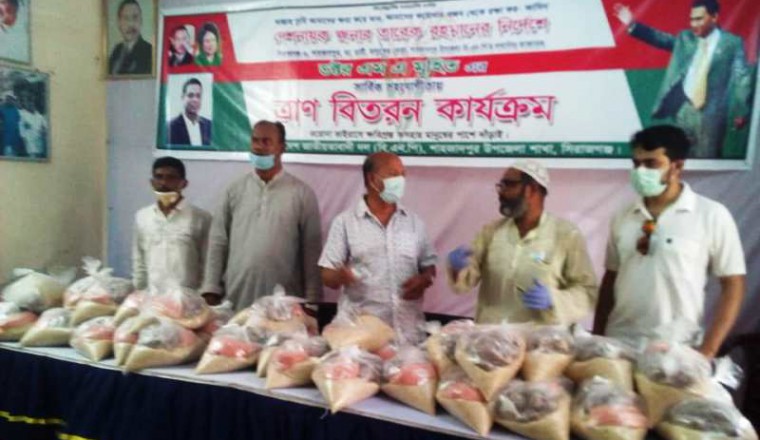 নিজস্ব প্রতিনিধিঃ বাংলাদেশ জাতীয়তাবাদী দল বিএনপি’র ভারপ্রাপ্ত চেয়ারম্যান তারেক রহমানের নির্দেশে প্রফেসর ড. এমএ মুহিতের পক্ষ থেকে শাহজাদপুরে উপজেলার পৌর এলাকার ৯ টি ওয়ার্ডসহ ১৩ টি ইউনিয়নের ৩ হাজার অসহায় দুস্থ মানুষের ঘরে ঘরে ত্রাণ পৌঁছে দিলেন শাহজাদপুর উপজেলা ও পৌর বিএনপি এবং এর অঙ্গ সহযোগী সংগঠনের নেতৃবৃন্দ। গতকাল মঙ্গলবার সকালে করোনা ভাইরাসের প্রভাবে কর্মহীন শাহজাদপুরের অসহায় মানুষের ঘরে ঘরে গিয়ে এ ত্রাণ পৌঁছে দেয়া হয়। ত্রাণ সামগ্রীর মধ্যে ছিল চাল, ডাল ও আলু। ত্রাণ বিতরণকালে অন্যান্যের মধ্যে অংশ নেন শাহজাদপুর উপজেলা বিএনপি’র যুগ্ম-আহবায়ক মোঃ ইকবাল হোসেন হিরু, আরিফুজ্জামান আরিফ, পৌর বিএনপি’র আহবায়ক প্রভাষক আবু শামীম, সদস্য সচিব আব্দুল আজিজ, উপজেলা বিএনপির সাবেক সাংগঠনিক সম্পাদক রেজাউল ইসলাম রাজা, বিএনপি নেতা এ্যাড. রায়হান উদ্দিন, মাহমুদুল হাসান সজল, পৌর যুবদলের সাধারণ সম্পাদক মোঃ জাহিদুল ইসলাম, যুবদল নেতা মোঃ মাসুম রানা, ছাত্রদল নেতা বাচ্চু, বখতিয়ার, জুয়েল প্রমূখ। এছাড়াও বিভিন্ন ইউনিয়ন ও ওয়ার্ড বিএনপির নেতৃবৃন্দ এ ত্রাণ বিতরণ কাজে অংশ নেন। এ বিষয়ে শাহজাদপুর উপজেলা বিএনপি'র যুগ্ম-আহবায়ক মোঃ ইকবাল হোসেন হিরু ও মোঃ আরিফুজ্জামান আরিফ বলেন, ‘অতীতেও যে কোন দুর্যোগে শাহজাদপুরের খেটে খাওয়া মেহনতী অসহায় মানুষের পাশে আমরা সাধ্যমতো দাঁড়িয়েছি। তেমনি করোনা ভাইরাসের ক্রান্তিকালেও আমরা শাহজাদপুরের দুঃস্থ্য মানুষের পাশে রয়েছি। ভবিষ্যতেও থাকবো, ইনশাআল্লাহ।’ অপরদিকে, করোনা ভাইরাসের ক্রান্তিকালে দীর্ঘদিন কর্মহীন হয়ে মানবেতর দিনযাপন করা অসহায় মানুষেরা ত্রাণ পেয়ে উদ্যোক্তা প্রফেসর ড. এমএ মুহিতসহ উপজেলা বিএনপির নেতৃবৃন্দের প্রতি গভীর কৃতজ্ঞতা প্রকাশ করেন।