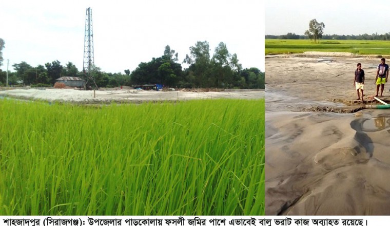 শাহজাদপুর সংবাদ ডটকম, নিজস্ব প্রতিনিধি, ১২ আগস্ট ২০১৮ খ্রিষ্টাব্দ : শাহজাদপুর উপজেলার পাড়কোলা মৌজায় টেকনিক্যাল স্কুল এন্ড কলেজের নির্মাণাধীন জমিতে গাইড ওয়াল নির্মাণ সম্পন্ন না করেই পাইপ লাইনের মাধ্যমে বালু দিয়ে জমি ভরাট বন্ধে স্থানীয় কৃষকদের পক্ষ থেকে অবশেষে আদালতে মোকাদ্দমা দায়ের হয়েছে। ‘বালু দিয়ে জমি ভরাট কাজে কোনো নিষেধাজ্ঞা প্রদান করা হবে না?’- এ মর্মে নির্ধারিত সময়ের মধ্যে এর কারণ দর্শাতে বিজ্ঞ আদালতের পক্ষ থেকে বিবাদী গংকে এ সংক্রান্ত একটি নোটিশ প্রদান করা হলেও বন্ধ হয়নি বালু ভরাট কাজ। ফলে ভবিষ্যত ক্ষতির আশংকায় স্থানীয় কৃষকেরা বিচলিত হয়ে পড়েছে। শাহজাদপুর সিনিয়র জজ আদালতে কৃষকদের পক্ষে দায়েরকৃত অপর প্রকার মোকাদ্দমা (নং-১৩৩/২০১৮) এর বাদী আব্দুল হালিম গং আক্ষেপ প্রকাশ করে অভিযোগ করেন, শাহজাদপুর উপজেলার পাড়কোলা মৌজায় টেকনিক্যাল স্কুল এন্ড কলেজের নির্মাণাধীন জমিতে গাইড ওয়াল নির্মাণ সম্পন্ন না করেই পাইপ লাইনের মাধ্যমে বালু দিয়ে জমি ভরাট কাজ করায় পার্শ্ববর্তী উর্বর ফসলী জমিতে বালির স্তর পড়তে পারে যা ভবিষ্যতে ফসলহানীর অন্যতম কারণ হয়ে দেখা দিতে পারে। ওই স্কুল এন্ড কলেজের জমি সংলগ্ন আরএস ২৬৭০, ২২৬৬, ২২৬৫, ২৬৭১, ২৬৭২, ২৬৭৭, ২৬৮০, ২৬৬৮ দাগের বাদীপক্ষের নিজস্ব ক তপশীলের প্রায় ৫ বিঘা উর্বর ফসলী জমি বালুর হাত থেকে রক্ষায় গত ৩০ জুলাই স্থানীয় কৃষকেরা বগুড়া জোনের শিক্ষা প্রকৌশল অধিদপ্তরের নির্বাহী প্রকৌশলী বরাবর একটি অভিযোগ দাখিল করেন। ওই অভিযোগের অনুলিপি শাহজাদপুর উপজেলা পরিষদের চেয়ারম্যান, উপজেলা নির্বাহী অফিসার, সহকারী প্রকৌশলী শাহজাদপুর ও সিরাজগঞ্জ বরাবর প্রেরণ করা হয়। কিন্তু অজ্ঞাত কারণে সংশ্লিষ্টদের পক্ষ থেকে কোন সাড়া না পাওয়ায় গত বুধবার শাহজাদপুর সিনিয়র জজ আদালতে কৃষকদের পক্ষ থেকে অপর প্রকার একটি মোকাদ্দমা করা হয়। বিজ্ঞ আদালত মোকাদ্দমাটি আমলে নিয়ে ৩ ও ৪ নং প্রতিপক্ষকে নির্ধারিত সময়সীমা বেধে দিয়ে ‘বালু দিয়ে জমি ভরাট কাজে কেনো নিষেধাজ্ঞা প্রদান করা হবে না?- মর্মে কারণ দর্শাতে বৃহস্পতিবার নোটিশ প্রদান করেন। কিন্তু নোটিশ পাওয়ার পরও ওই স্থানে পাইপ লাইনের মাধ্যমে বালি ভরাট কাজ অব্যাহত থাকায় ইতিমধ্যেই তাদের জমিতে পুরু স্তরের বালু জমতে শুরু করেছে। এভাবে চলতে থাকলে তাদের জমিসহ পার্শ্ববর্তী প্রায় ৫০ বিঘা উর্বর ফসলী জমিতে ভবিষ্যতে ফসল উৎপাদন সম্ভব হবে না। আর ভবিষ্যতে ফসল আবাদে বিঘ্ন ঘটলে সারা বছর পরিবার পরিজন নিয়ে জীবীকা নির্বাহে এসব প্রান্তিক কৃষকদের চরম অনিশ্চয়তায় পড়তে হবে। অবিলম্বে ফসলী জমির উর্বরা শক্তি রক্ষায় সংশ্লিষ্ট কর্তৃপক্ষের আশু হস্তক্ষেপ কামনা করেছেন কৃষকেরা।