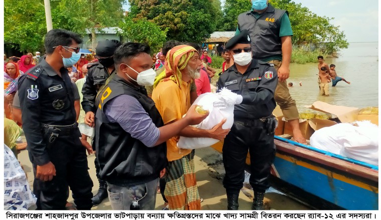 রোববার (২৩ অাগষ্ট) দুপুরে র‌্যাপিড এ্যাকশান ব্যাটেলিয়ান (র‌্যাব)-১২ এর উদ্যোগে শাহজাদপুরে দেড়শ বন্যার্ত পরিবারের খাদ্যসামগ্রী বিতরণ করা হয়েছে। র‌্যাব-১২ এর অধিনায়ক লেফটেনেন্ট কর্নেল খায়রুল ইসলামের সার্বিক তত্তাবধানে শাহজাদপুর উপজেলার ভাটপাড়াসহ যমুনা তীরবর্তী দেড়শ বন্যার্ত পরিবারের মাঝে চাল, ডাল, তেলসহ অন্যান্য খাদ্য সামগ্রী বিতরন করা হয়। এতে গুরুত্ব পায় এলাকার নানা বয়সী প্রতিবন্ধীরা। তাদের হাতে র‌্যাবের পক্ষ থেকে এসব খাদ্য সামগ্রী তুলে দেন এলিট ফোর্স র‌্যাব-১২ এর সদস্যরা। ভাটপাড়া এলাকার ক্ষতিগ্রস্ত বৃদ্ধ আব্দুল জলিল এই খাদ্য সামগ্রী উপহার পেয়ে র‌্যাবের প্রতি কৃতজ্ঞতা প্রকাশ করে বলেন, এবারের বন্যায় খুব কষ্ট পোহাতে হচ্ছে। বাধের উপর আশ্রয় নিয়েছিলাম। কোন সহায়তা পাইনি। র‌্যাব ভাইয়েরা আমাদের ডেকে নিয়ে অনেক কিছু দিলেন। তারা যেমন দেশকে নিরাপদ রাখতে ভুমিকা পালন করছে। আবার বিপদে আমাদের মত মহা অসহায়দের পাশে দাঁড়াছে। তারা এভাবেই যেন ভালবাসা দিয়ে মানুষের হৃদয়ে স্থান করে নেয় ও দেশসেবায় নিয়োজিত থাকতে পারে। উল্লেখ্য, চলতি বন্যায় গত কয়েক মাসে র‌্যাব-১২ এর অধিনায়ক লেফটেনেন্ট কর্নেল খায়রুল ইসলামের উদ্যোগে বন্যা দুর্গত বেলকুচি, সিরাজগঞ্জ, কাজিপুর, এনায়েতপুরসহ বিভিন্ন এলাকায় বিপুল পরিমান খাদ্য সামগ্রী বন্যা দুর্গত অসহায় কয়েক সহ¯্রাদিক পরিবারের মাঝে বিতরন করা হয়েছে। অপরাধ দমনের পাশাপাশি এমন মানবিক উদ্যোগ নেয়ায় র‌্যাব-১২ সদস্যদের সাধুবাদ জানিয়েছে এলাকাবাসী ও কৃতজ্ঞতা জ্ঞাপন করেছে বন্যার্তরা।