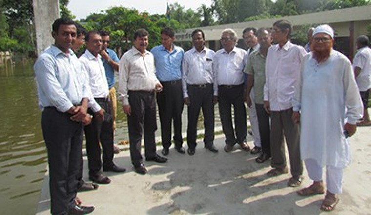 শাহজাদপুর উপজেলা সংবাদদাতাঃ শাহজাদপুর উপজেলার কোর্ট ভবন চত্বরে বন্যার পানি ঢুকে যাওয়ায় জরুরী কার্যক্রম অব্যাহত থাকলেও কোর্ট ভবনের স্বাভাবিক কার্যক্রম ব্যহত হচ্ছে। এ ঘটনায় আজ সোমবার দুপুরে আকষ্মিক কোর্ট ভবন পরিদর্শন করেন সিরাজগঞ্জ জেলার চিফ জুডিশিয়াল ম্যাজিষ্ট্রেট আব্দুল্লাহ আল মামুন, অতিরিক্ত জেলা ও দায়রা জজ ড. ইমান আলী, অতিরিক্ত চিফ জুডিশিয়াল ম্যাজিষ্ট্রট মোর্শেদুল আলম, সিনিয়র জুডিশিয়াল ম্যাজিষ্ট্রেট হাসিবুল হক, সিনিয়র সহকারী জজ তোফাজ্জল হোসেন, জেলা আইনজীবী সমিতির সভাপতি রেজাউল করিম রাখাল, সাধারণ সম্পাদক নাছিম সরকার, জিপি জাহিদ হোসেন, মালেক আব্দুর রহিম, উপজেলা আইনজীবী সমিতির সভাপতি এ্যাড. আনোয়ার হোসেন, নারী ও শিশু নির্যাতন দমন বিশেষ ট্রাইব্যুনালের স্পেশাল পিপি এ্যাড. এমএ হামিদ লাভলু, এ্যাড. মতিয়ার রহমান, অতিরিক্ত পিপি আবুল কাশেম, এ্যাড. নুরুল আমিন,সিলিং হক প্রমুখ। পরে বন্যায় ডুবে যাওয়া কোর্ট ভবন ঘুরে ঘুরে তারা দেখেন জেলা থেকে আগত বিচারকবৃন্দ।