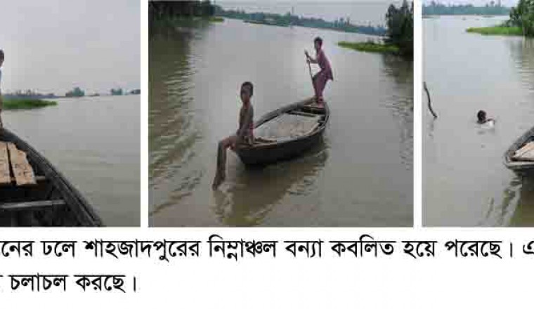 মোঃ মুমীদুজ্জামান জাহান, স্থানীয় প্রতিনিধিঃ গত কয়েক দিনের ভারী বর্ষণ ও উজান থেকে নেমে আসা পাহাড়ী ঢলের পানিতে শাহজাদপুর উপজেলার পৌর এলাকা সহ ১৩টি ইউনিয়নের আবাদী জমি, বাড়ি-ঘর ও নদ-নদী বন্যা কবলিত হয়ে পড়েছে। এতে বোনা আমন, ও সবজির ক্ষতি হয়েছে।