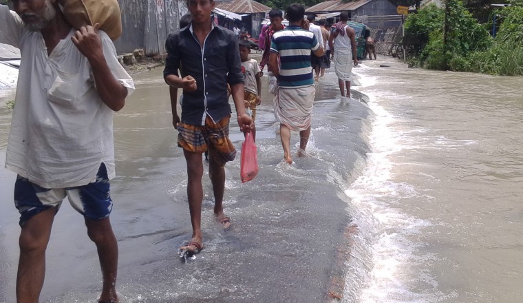 নিজস্ব প্রতিনিধিঃ গত ২৪ ঘন্টায় শাহজাদপুর উপজেলার ১৩টি ইউনিয়নে বন্যার পানি আরও ৭ সেন্টিমিটার বৃদ্ধি পেয়েছে। এতে আরও ২০০ শতাধিক কাঁচা ঘরবাড়ী নতুন করে ডুবে গেছে। এছাড়া পোরজনা-জামিরতা পাকা সড়ক বন্যার পানিতে ডুবে যোগাযোগ বিচ্ছিন্ন হয়ে পড়েছে। চরকৈজুরী-চরগুধীবাড়ী সড়ক ভেঙে গেছে । কৈজুরী বাজার,জামিরতা বাজার ও গুপিয়াখালী বাজার বন্যার পানিতে ডুবে গেছে। এছাড়া রাউতারা স্লুইচ গেট সংলগ্ন রিং বাধ বন্যার পানিতে ডুবে যাওয়ায় শাহজাদপুর সহ চলন বিল অঞ্চলের বিস্তৃর্ণ এলাকা বন্যা কবলিত হয়ে পড়েছে। অপরদিকে শাহজাদপুর উপজেলার কৈজুরী মাদ্রাসা, প্রাথমিক বিদ্যালয়, কৈজুরী ইউনিয়ন পরিষদ চত্ত্বর, কৈজুরী ভূমি অফিস ও উপস্বাস্থ্য কেন্দ্র চত্ত্বর বন্যার পানিতে ডুবে গেছে। ফলে এলাকাবাসীকে বন্যায় চরম দূর্ভোগ পোহাতে হচ্ছে। কৈজুরী প্রাথমিক বিদ্যালয় ও জামিরতা কলেজ বন্যার পানিতে ডুবে যাওয়ায় বন্ধ ঘোষনা করা হয়েছে। অপর দিকে কৈজুরী মাদ্রাসা বন্ধ ঘোষনা না করায় শিক্ষক-শিক্ষার্থীদের হাটু পানি ভেঙ্গে ক্লাস করতে হচ্ছে। এতে তাদের চরম দূর্ভোগ বেড়েছে। এছাড়া শাহজাদপুরের গো-খাদ্যের তীব্র সংকট সৃষ্টি হওয়ায় কৃত্রিম খাদ্যের দাম বস্তা প্রতি ১০০ থেকে ১২০ টাকা বৃদ্ধি পেয়েছে। কৈজুরী ইউনিয়ন পরিষদের চেয়ারম্যান সাইফুল ইসলাম তার এলাকার বন্যা দূর্গত মানুষের জন্য পর্যাপ্ত ত্রাণ,আশ্রয়কেন্দ্র ও নোঙর খানা খুলে দেওয়ার জোড় দাবী জানিয়েছেন।