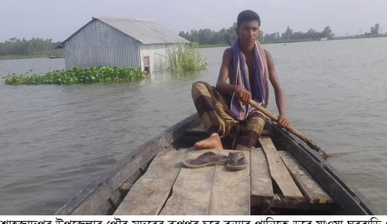 মোঃ মুমীদুজ্জামান জাহানঃ যমুনা নদীতে পানি বৃদ্ধি অব্যাহত থাকায় সিরাজগঞ্জের শাহজাদপুর উপজেলার পৌর এলাকা সহ ১৩ টি ইউনিয়নের বন্যা পরিস্থিতির চরম অবনতি হয়েছে। অপরদিকে চরকৈজুরি গ্রামের শান্ত মন্ডলের শিশু কন্যা শান্তনা খাতুন(৬)বন্যার পানিতে গোসল করতে গিয়ে গভির পানিতে ডুবে মারা গেছে। এ ঘটনায় এলাকায় শোকের ছায়া নেমে এসেছে। জানা যায়, রোজার ঈদের কয়েকদিন আগে রাউতারা স্লুইচগেট সংলগ্ন রিং বাঁধ ভেঙ্গে বিস্তৃর্ণ এলাকা বন্যা কবলিত হওয়ার পর গত কয়েক দিনের টানা বর্ষণ ও উজানের ঢলে এ পরিস্থিতির সৃষ্টি হয়েছে। বিশেষ করে যমুনা নদীর অধিকাংশ চর ডুবে যাওয়ায় হত দরিদ্র মানুষ জন চরম বিপাকে পড়েছে। এ ছাড়া পৌর সদরের রূপপুর চর এলাকা সহ শহরের অধিকাংশ নিচু এলাকা বন্যা কবলিত হয়ে পড়েছে। এ সব এলাকার পথ ঘাট ডুবে যাওয়ায় মানুষ জন নৌকায় করে চলাচল করছে। অপরদিকে উপজেলার ১৩ টি ইউনিয়নের নিচু ও কাঁচা ঘরবাড়ি বন্যার পানিতে ডুবে যাওয়ায় তারা মানবেতর জীবন যাপন করছে। জানা গেছে,শাহজাদপুর পয়েন্টে যমুনা নদীর পানি বৃদ্ধি পেয়ে গত ২৪ ঘন্টায় বিপদ সীমার ৩২ সেন্টিমিটার নীচ দিয়ে প্রবাহিত হচ্ছে । বন্যার পানি এ ভাবে বৃদ্ধি অব্যাহত থাকলে ২/১ দিনের মধ্যে তা বিপদসীমা অতিক্রম করার সম্ভাবনা রয়েছে । শুক্রবার বিকেলে শাহজাদপুরের রূপপুর চর এলাকায় গেলে হৃদয়,রণজিৎ,গণি মিয়া,রাজু সিদ্দিক,আমেনা বেগম,ফিরোজা খাতুন জানান, এখানকার প্রায় অর্ধ শতাধিক পানি বন্দি মানুষ খাদ্য সংকটে পড়ে মানবেতর জীবন যাপন করছে। তাদের কাছে গত কয়েক দিনেও কোন সরকারী সাহায্য পৌছেনি। এ ব্যাপারে শাহজাদপুর পৌরসভার ভারপ্রাপ্ত মেয়র নাসির উদ্দিন বলেন, উর্ধতন কর্তৃপক্ষকে বিষয়টি অবহিত করা হয়েছে। সরকারী সাহায্য পেলে তা দ্রুত সময়ের মধ্যে তাদের কাছে পৌছে দেয়া হবে।